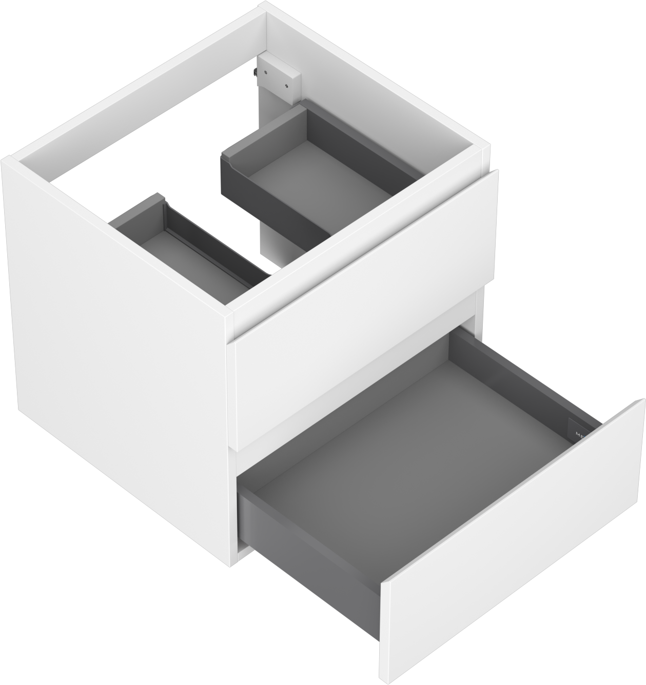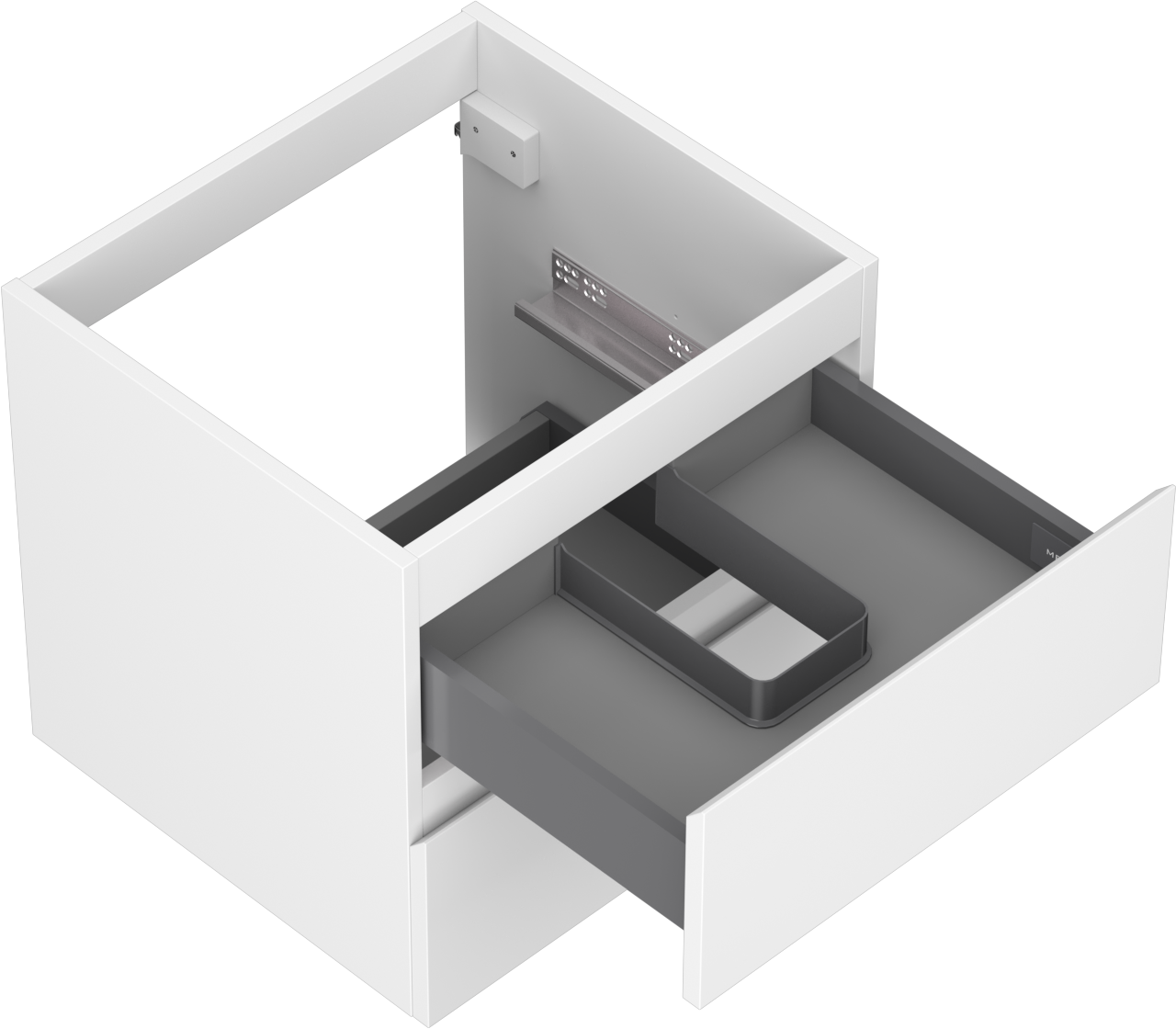 Изрезът в чекмеджето е проектиран по такъв начин, че да побере сифона, който е необходим в мивковите инсталации. Благодарение на това мебелът може да бъде монтиран напълно функционално, без да се налага отказване от пространството в чекмеджето заради инсталацията.
