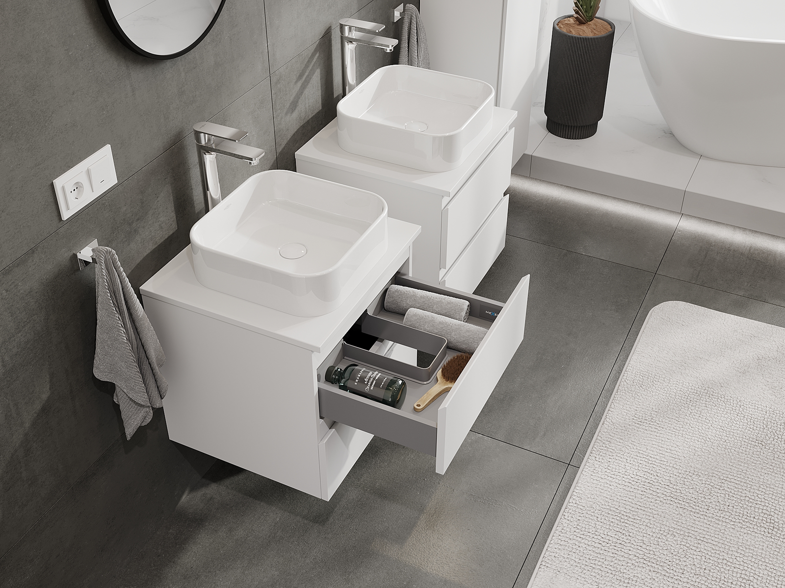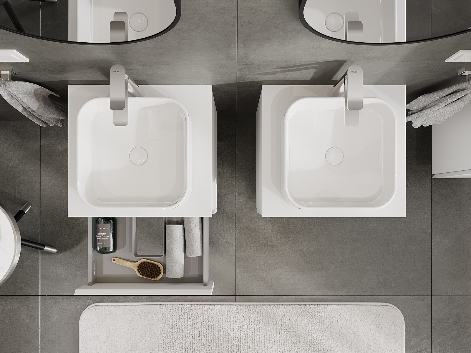 Нашите модулни мебели за баня могат да се комбинират в различни цветови конфигурации, което позволява пълна персонализация. Може да се избере както външният вид, така и функциите на отделните елементи, което позволява съчетаване на мебелите със собствените стилови и функционални предпочитания.