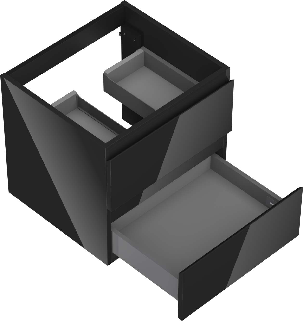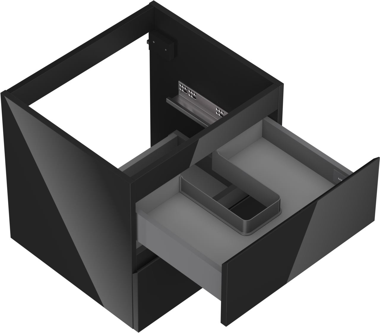 Изрезът в чекмеджето е проектиран по такъв начин, че да побере сифона, който е необходим в мивковите инсталации. Благодарение на това мебелът може да бъде монтиран напълно функционално, без да се налага отказване от пространството в чекмеджето заради инсталацията.