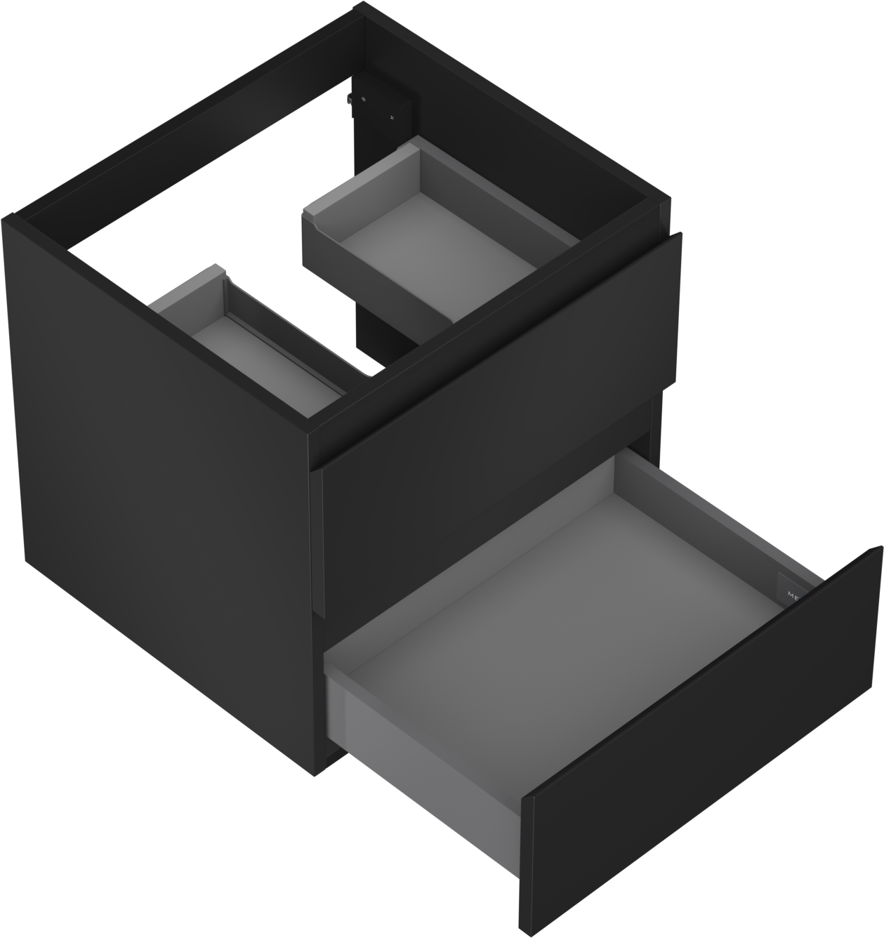 Изрезът в чекмеджето е проектиран по такъв начин, че да побере сифона, който е необходим в мивковите инсталации. Благодарение на това мебелът може да бъде монтиран напълно функционално, без да се налага отказване от пространството в чекмеджето заради инсталацията.
