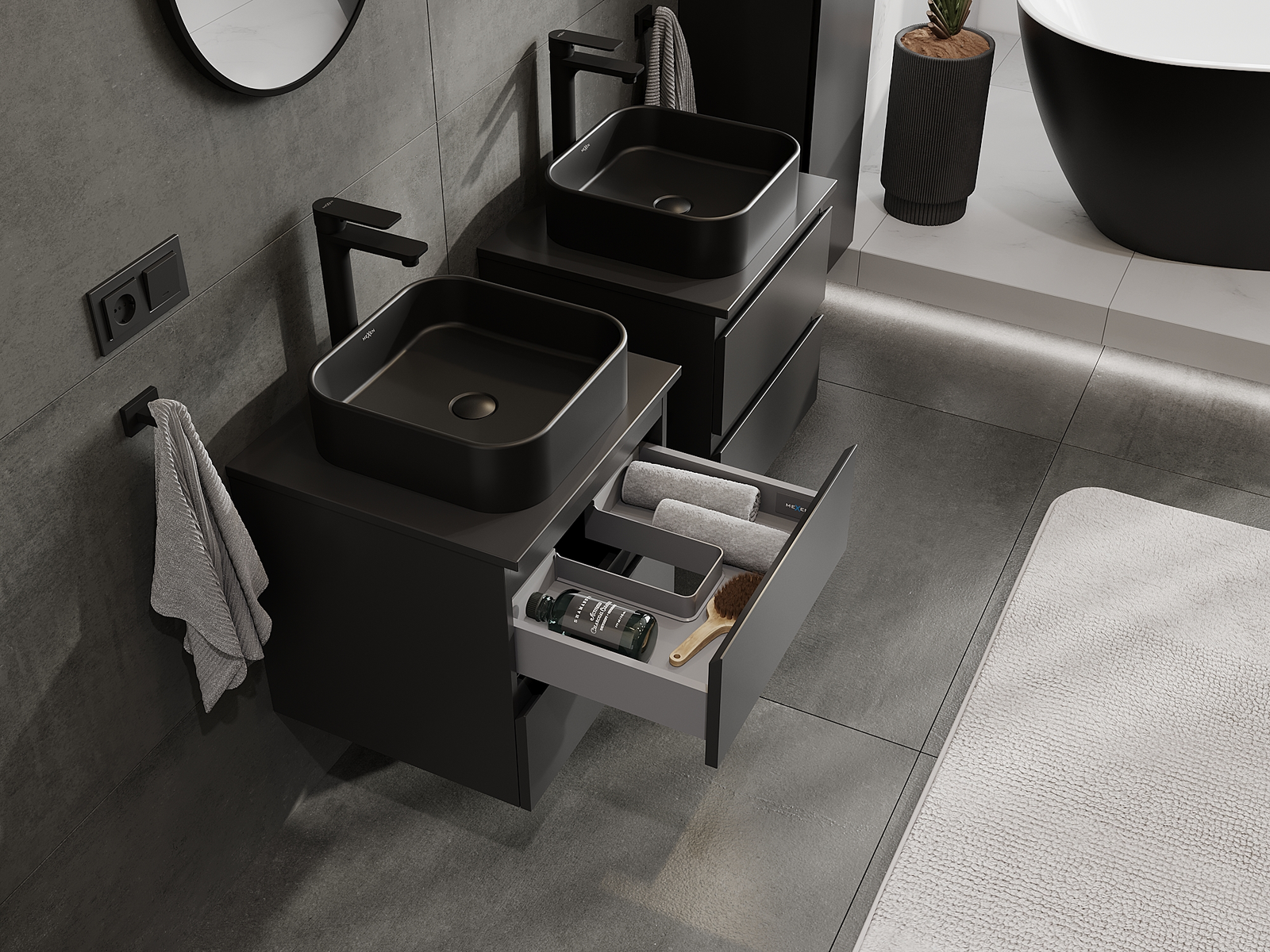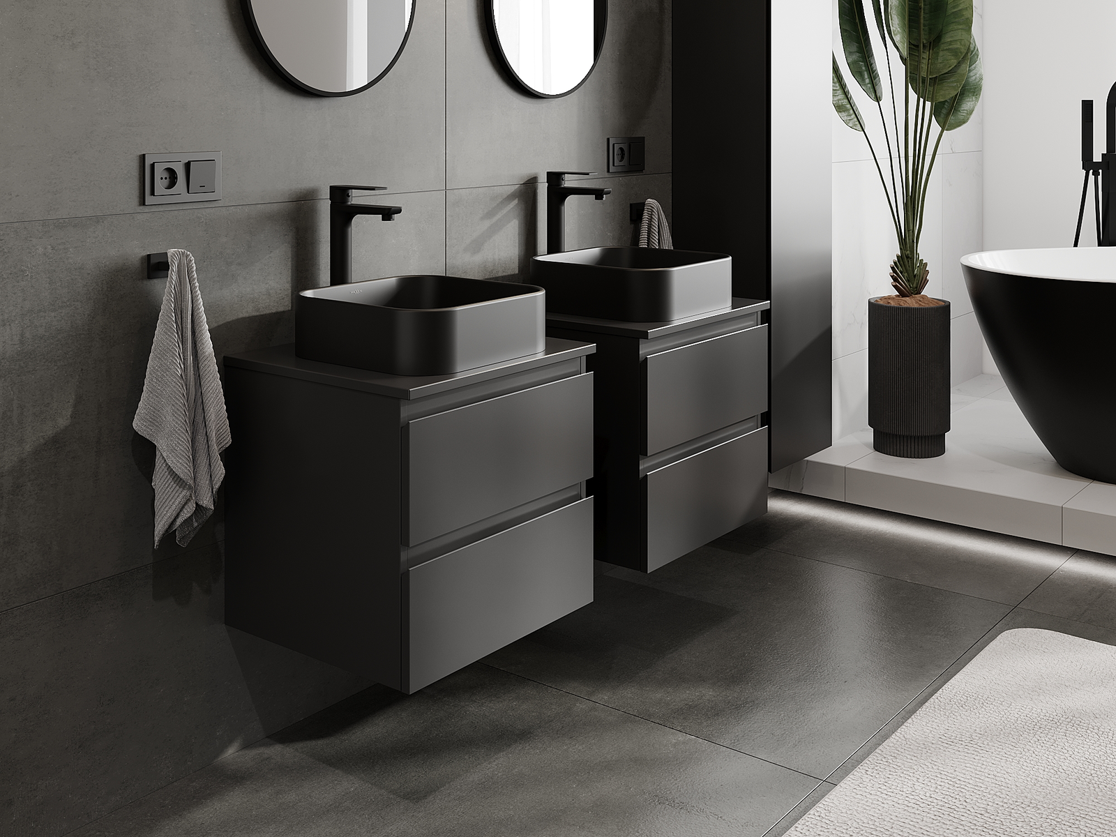 Нашите модулни мебели за баня могат да се комбинират в различни цветови конфигурации, което позволява пълна персонализация. Може да се избере както външният вид, така и функциите на отделните елементи, което позволява съчетаване на мебелите със собствените стилови и функционални предпочитания.
