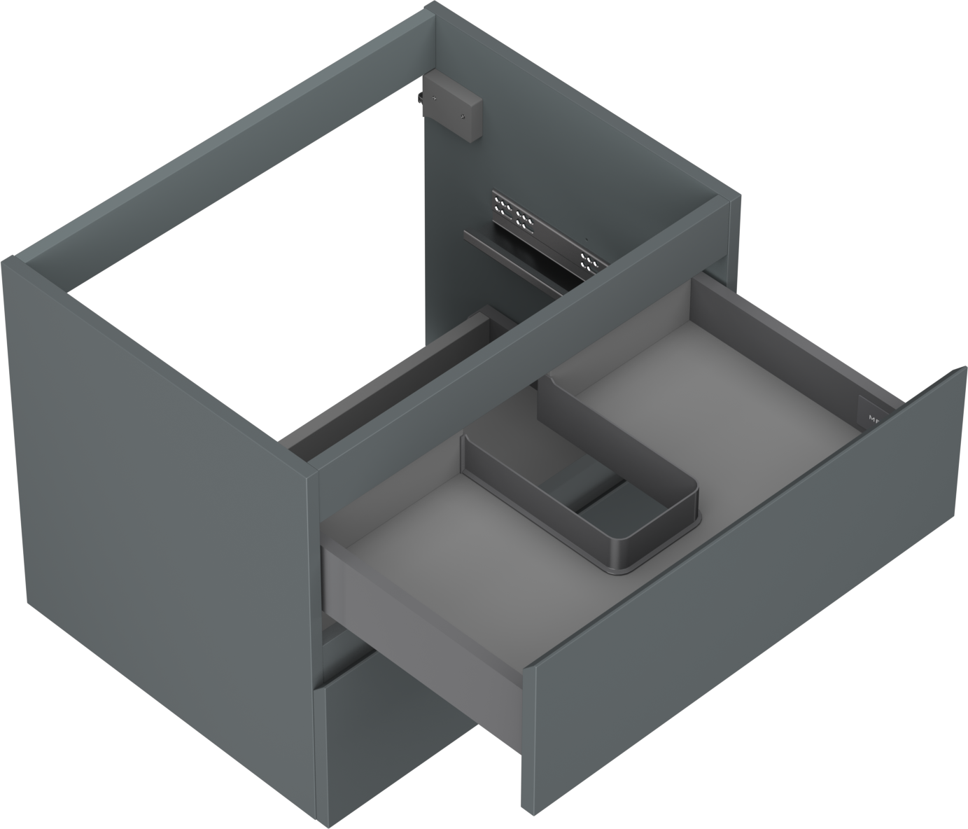 Изрезът в чекмеджето е проектиран по такъв начин, че да побере сифона, който е необходим в мивковите инсталации. Благодарение на това мебелът може да бъде монтиран напълно функционално, без да се налага отказване от пространството в чекмеджето заради инсталацията.