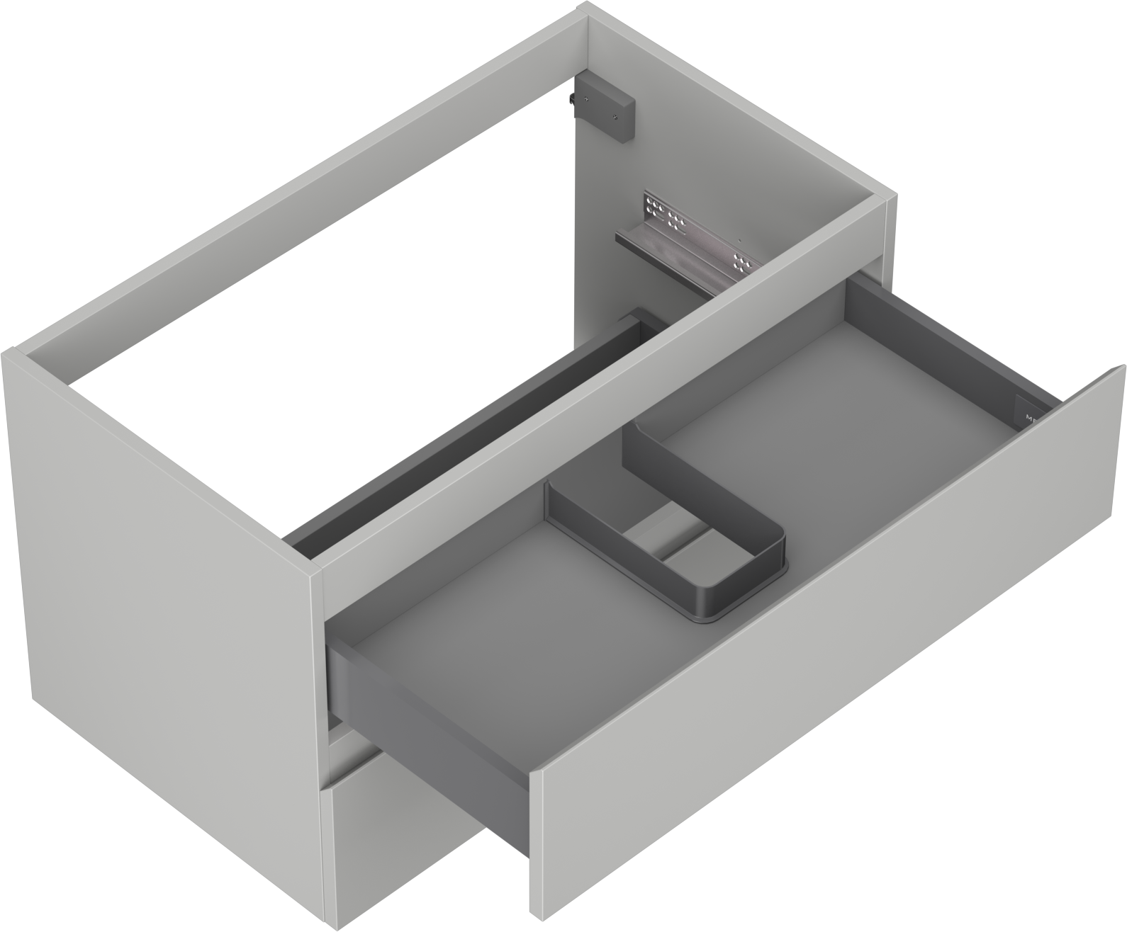 Изрезът в чекмеджето е проектиран по такъв начин, че да побере сифона, който е необходим в мивковите инсталации. Благодарение на това мебелът може да бъде монтиран напълно функционално, без да се налага отказване от пространството в чекмеджето заради инсталацията.