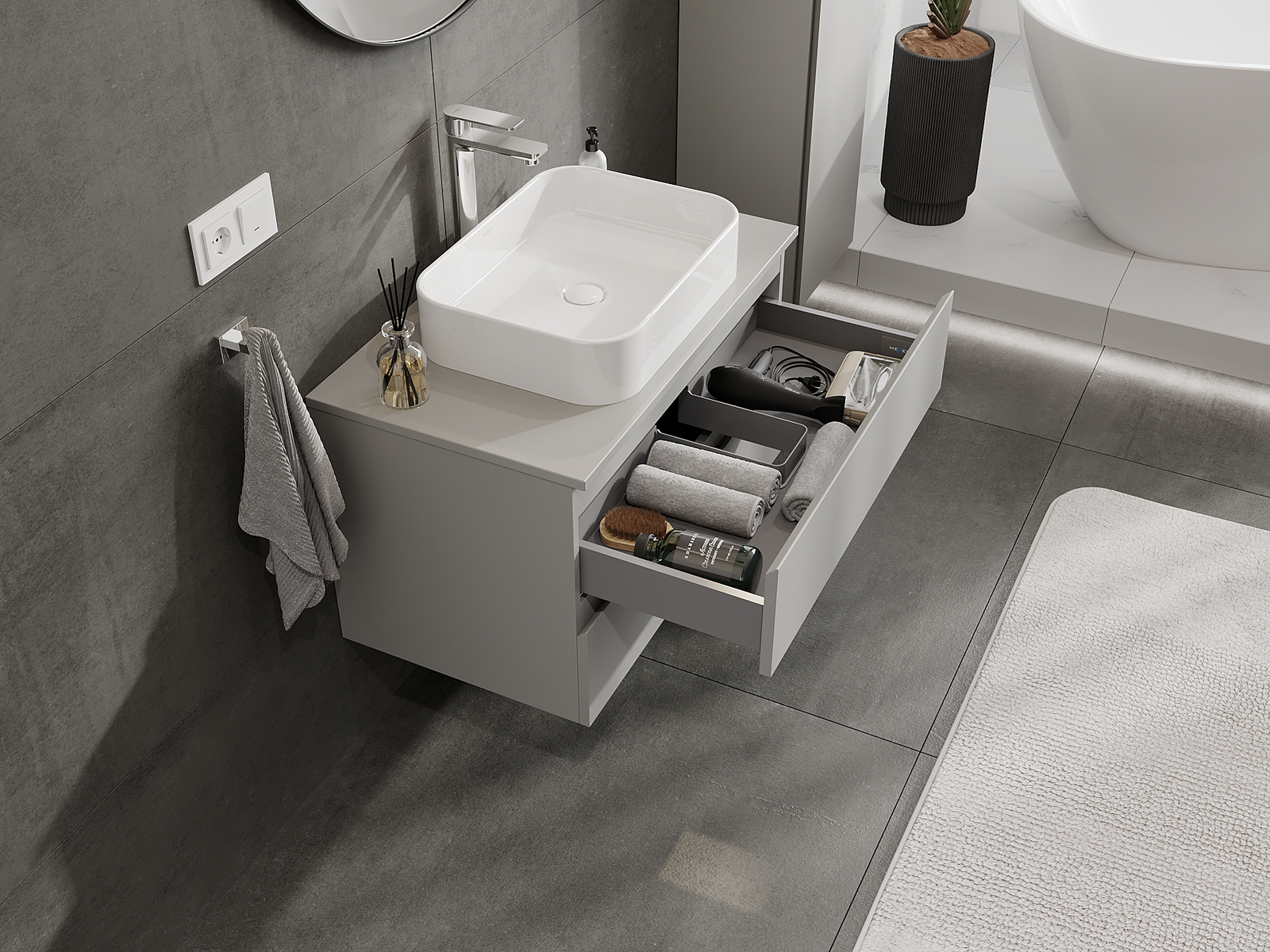 Нашите модулни мебели за баня могат да се комбинират в различни цветови конфигурации, което позволява пълна персонализация. Може да се избере както външният вид, така и функциите на отделните елементи, което позволява съчетаване на мебелите със собствените стилови и функционални предпочитания.