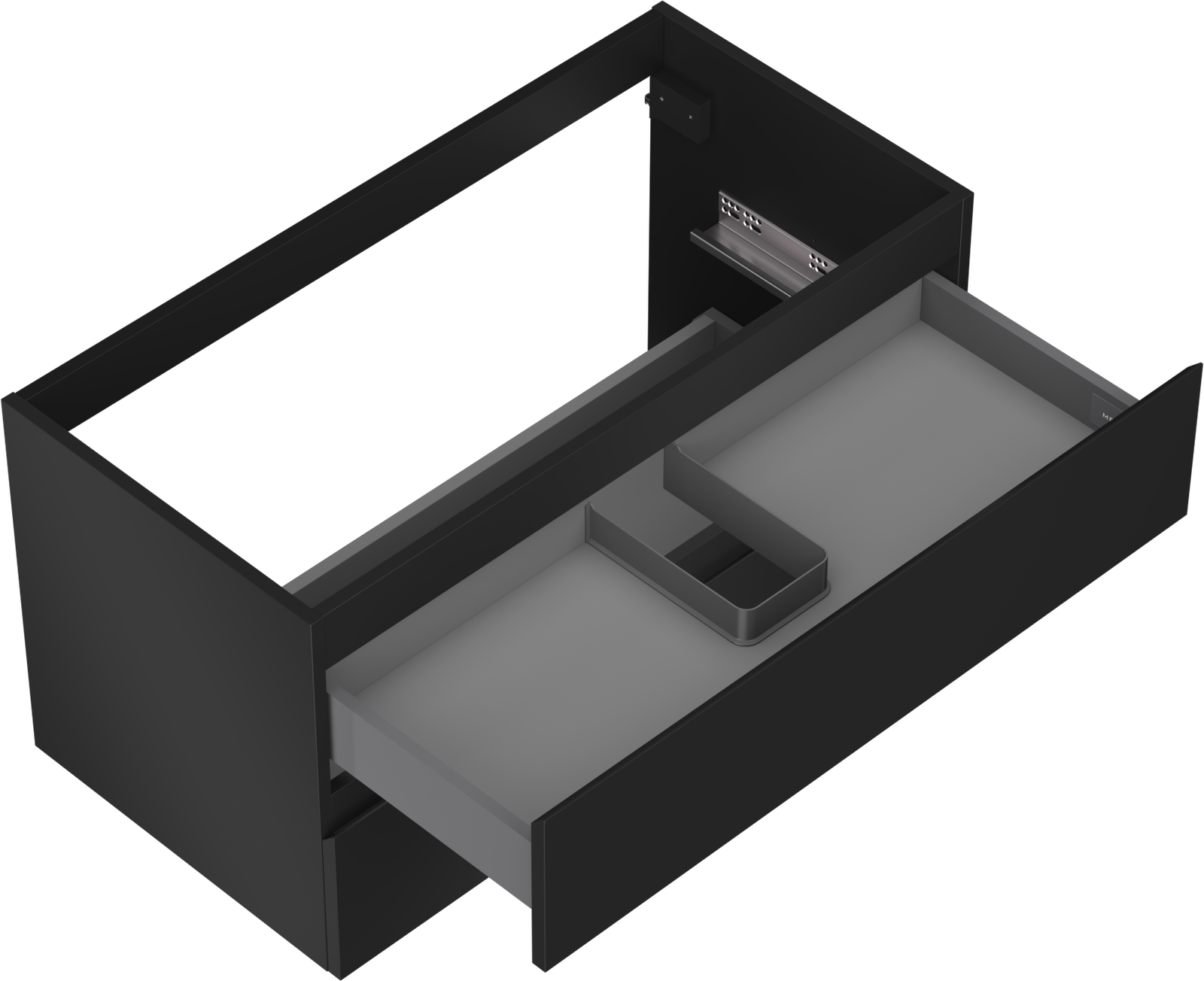 Изрезът в чекмеджето е проектиран по такъв начин, че да побере сифона, който е необходим в мивковите инсталации. Благодарение на това мебелът може да бъде монтиран напълно функционално, без да се налага отказване от пространството в чекмеджето заради инсталацията.