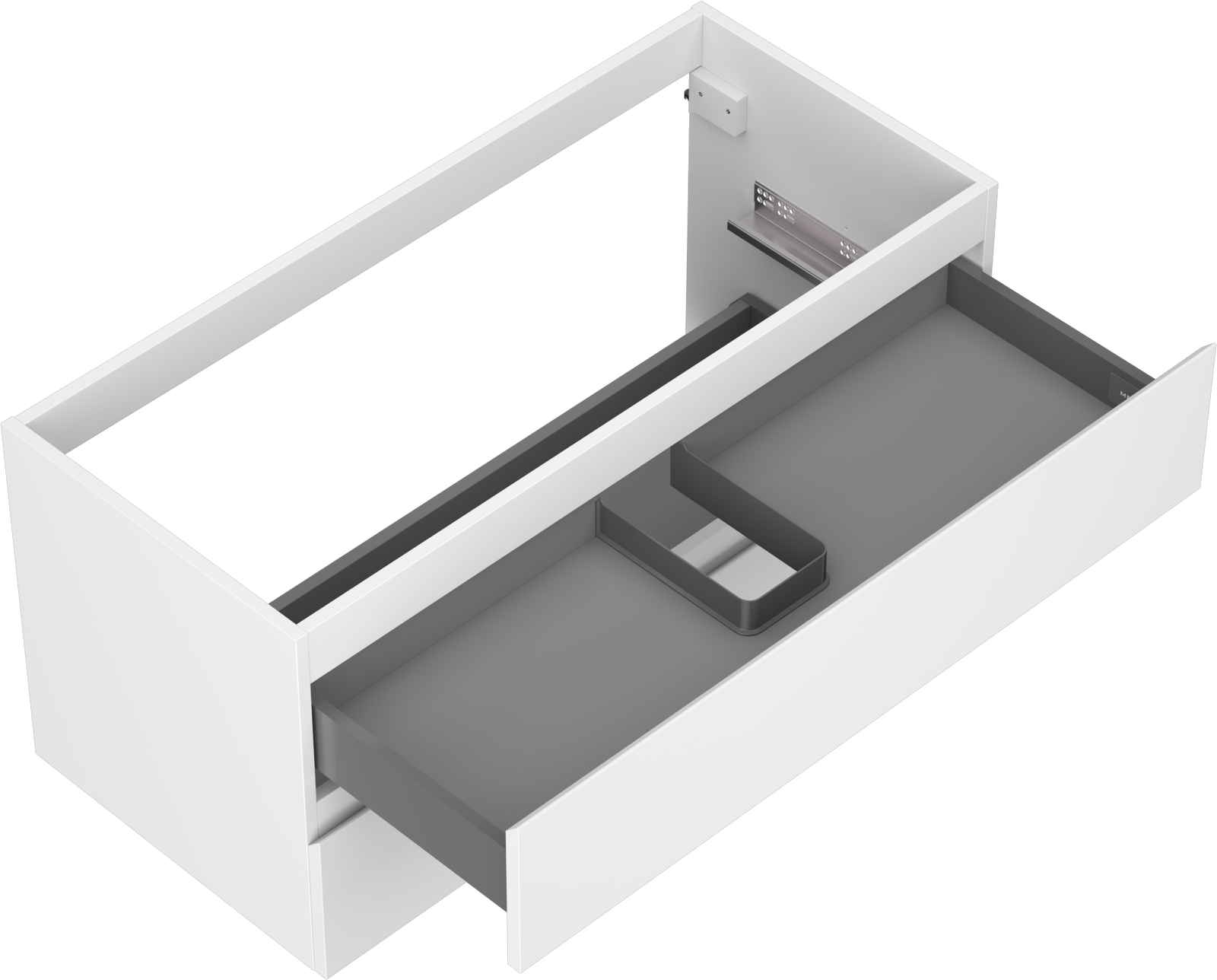 Изрезът в чекмеджето е проектиран по такъв начин, че да побере сифона, който е необходим в мивковите инсталации. Благодарение на това мебелът може да бъде монтиран напълно функционално, без да се налага отказване от пространството в чекмеджето заради инсталацията.