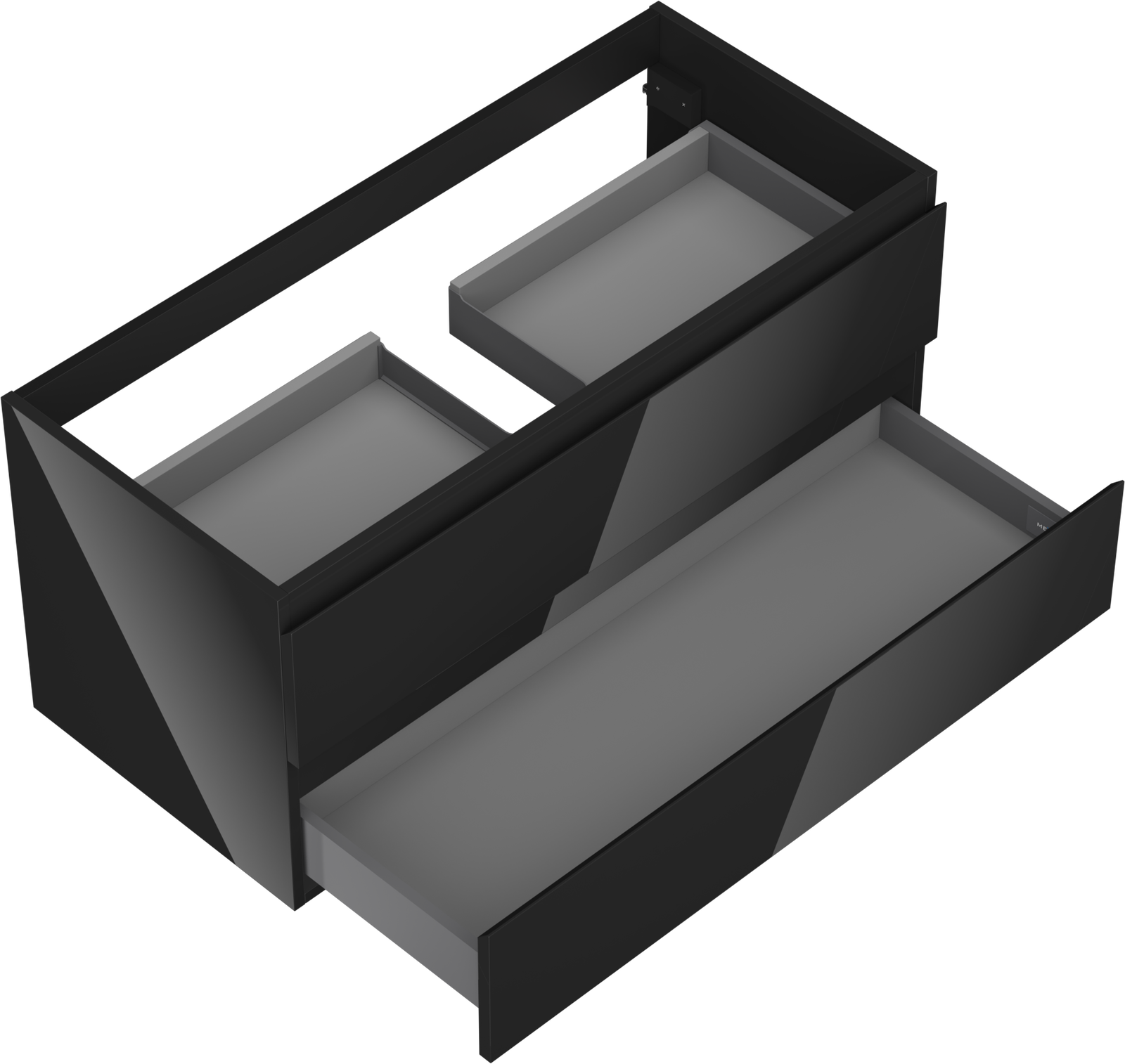 Изрезът в чекмеджето е проектиран по такъв начин, че да побере сифона, който е необходим в мивковите инсталации. Благодарение на това мебелът може да бъде монтиран напълно функционално, без да се налага отказване от пространството в чекмеджето заради инсталацията.