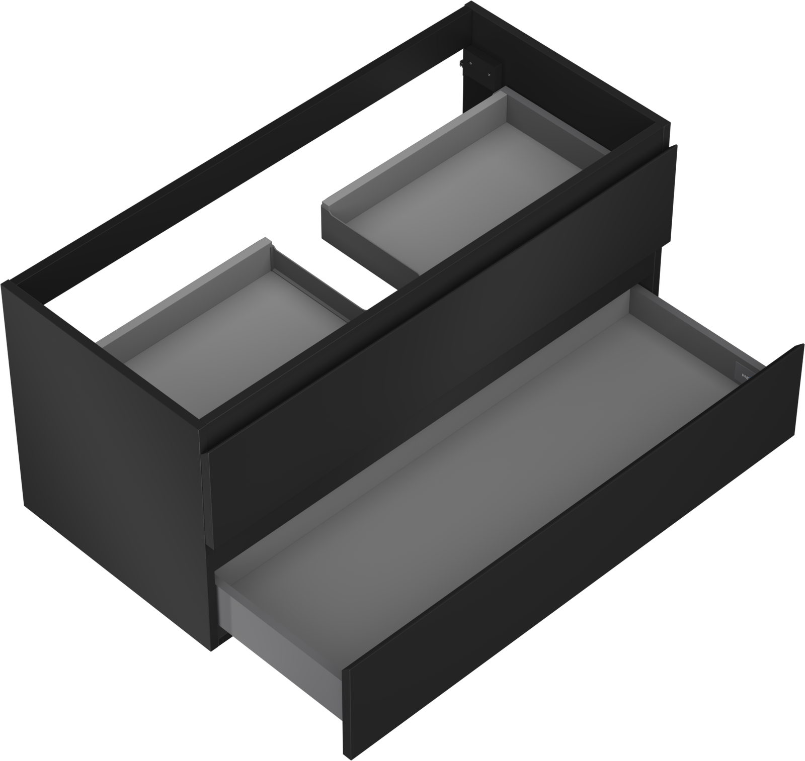 Изрезът в чекмеджето е проектиран по такъв начин, че да побере сифона, който е необходим в мивковите инсталации. Благодарение на това мебелът може да бъде монтиран напълно функционално, без да се налага отказване от пространството в чекмеджето заради инсталацията.