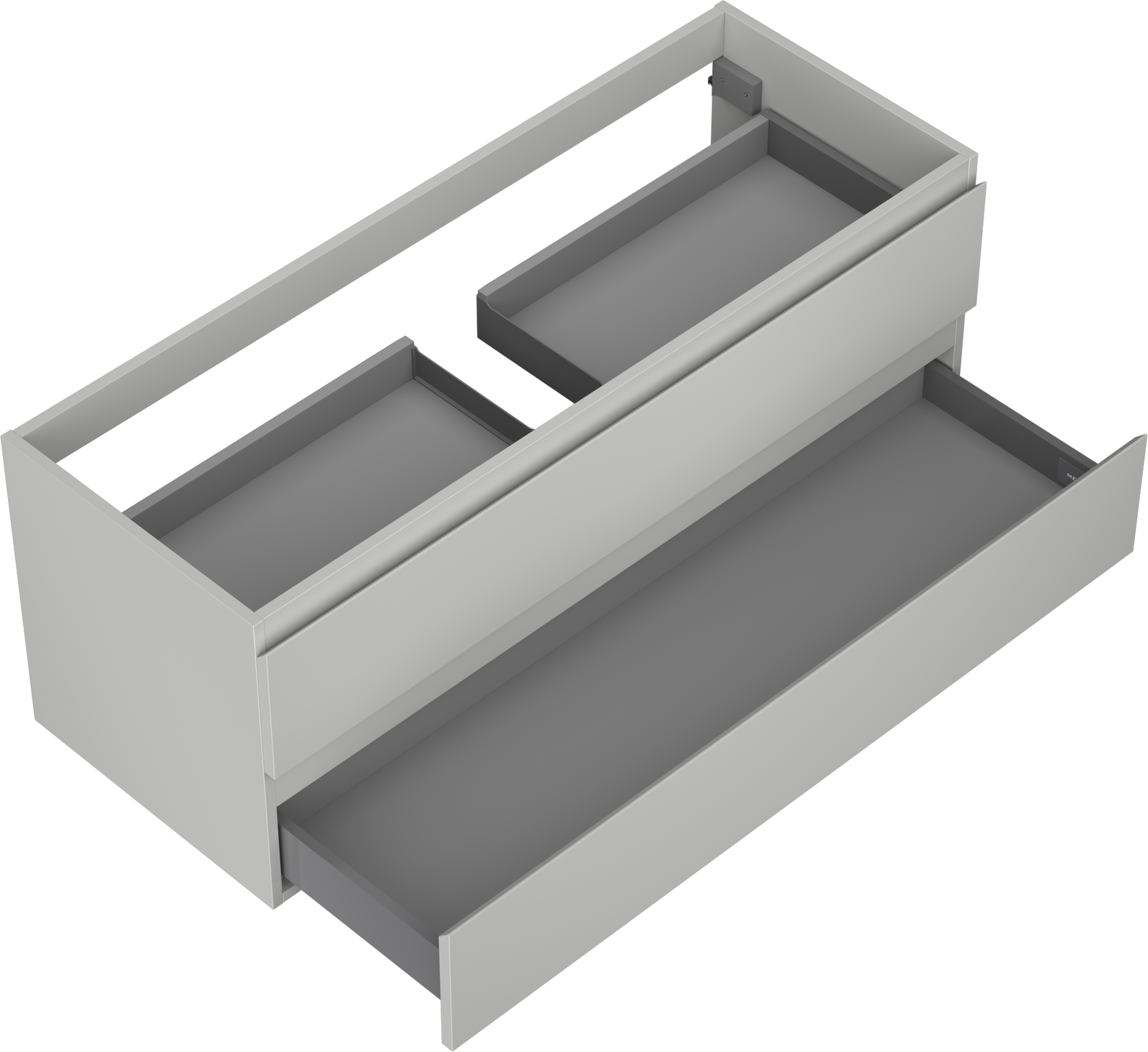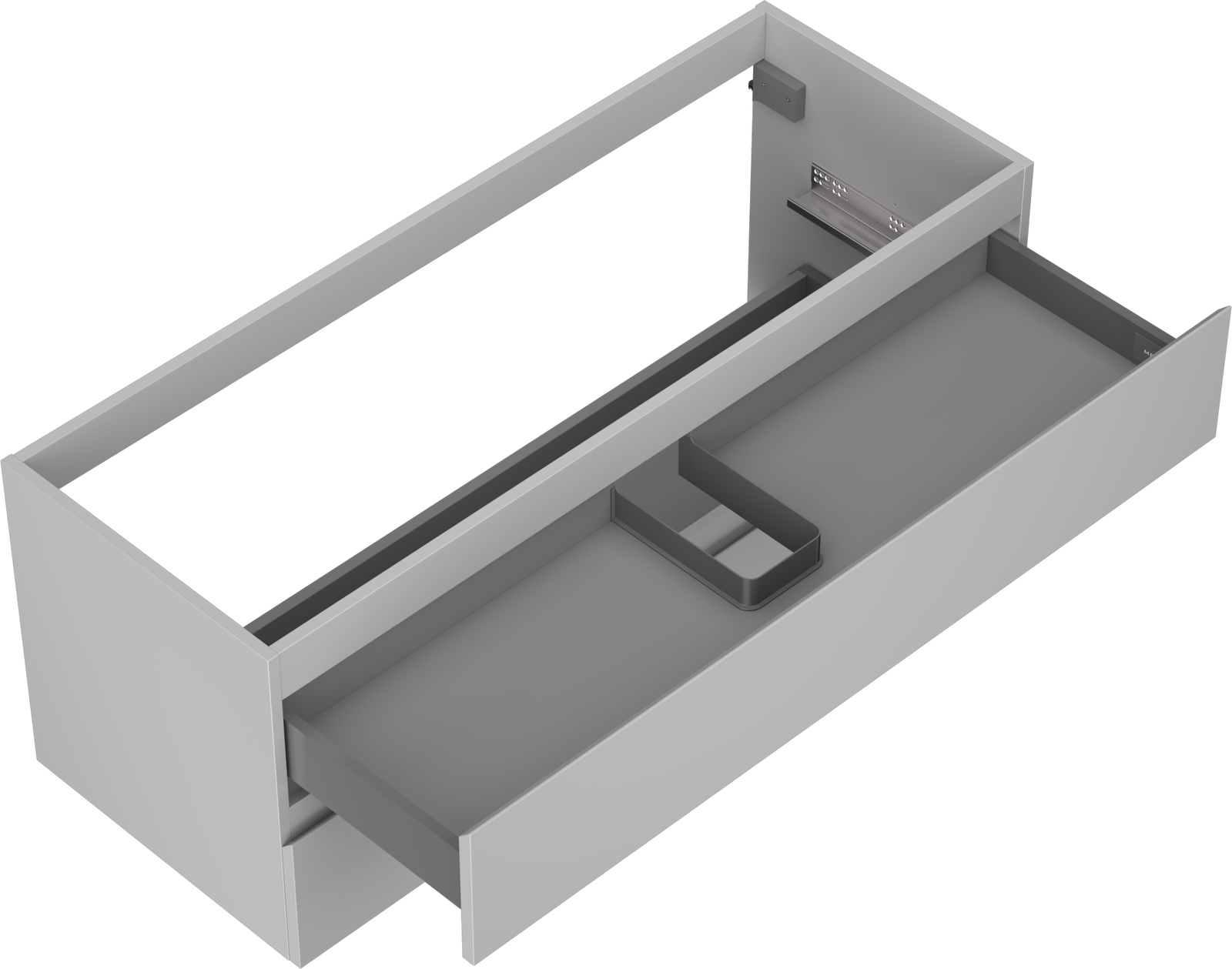Изрезът в чекмеджето е проектиран по такъв начин, че да побере сифона, който е необходим в мивковите инсталации. Благодарение на това мебелът може да бъде монтиран напълно функционално, без да се налага отказване от пространството в чекмеджето заради инсталацията.