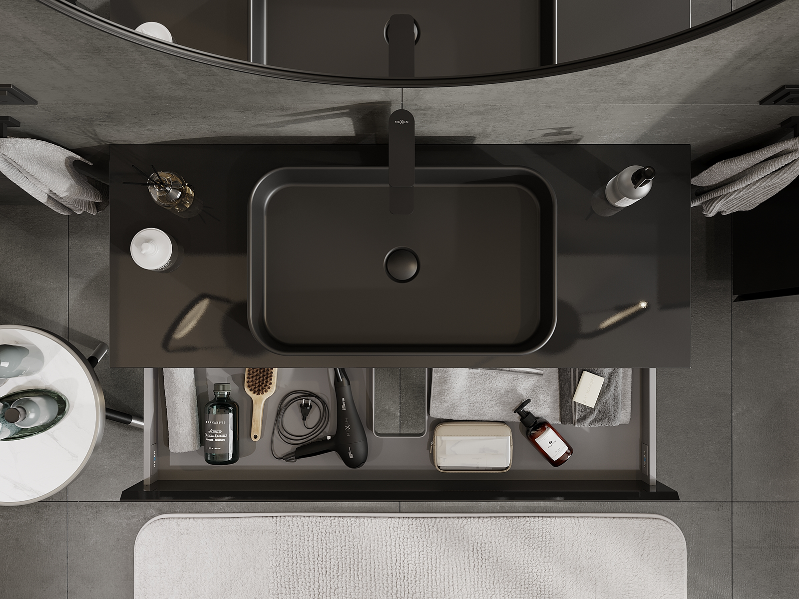 Изрезът в чекмеджето е проектиран по такъв начин, че да побере сифона, който е необходим в мивковите инсталации. Благодарение на това мебелът може да бъде монтиран напълно функционално, без да се налага отказване от пространството в чекмеджето заради инсталацията.