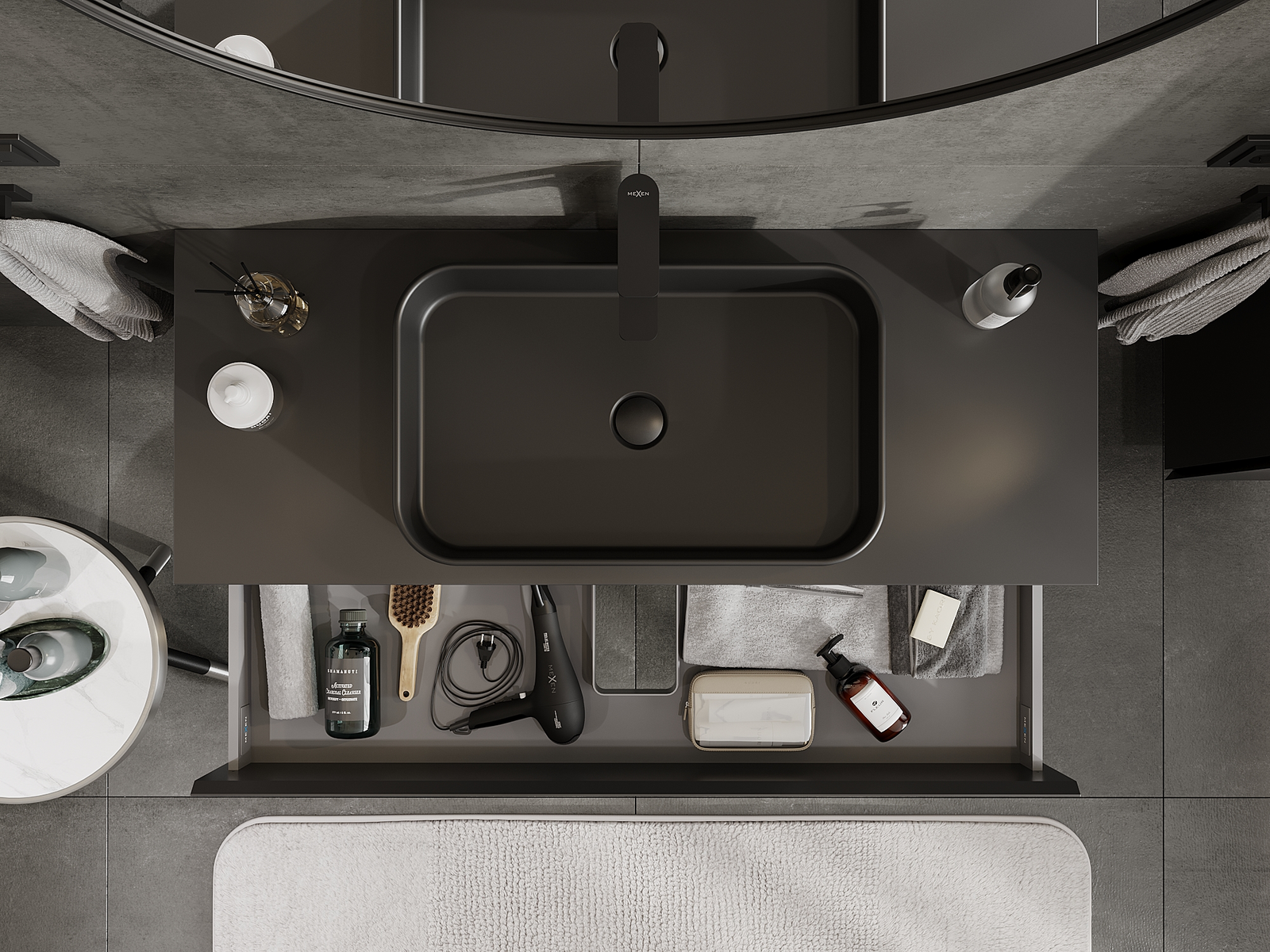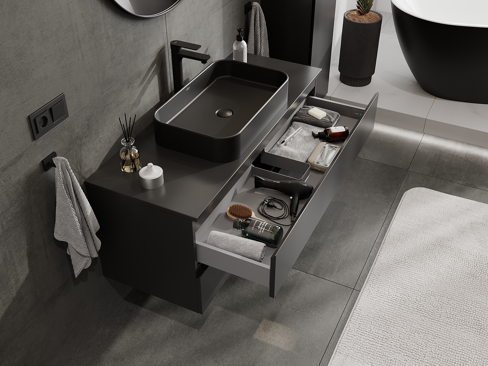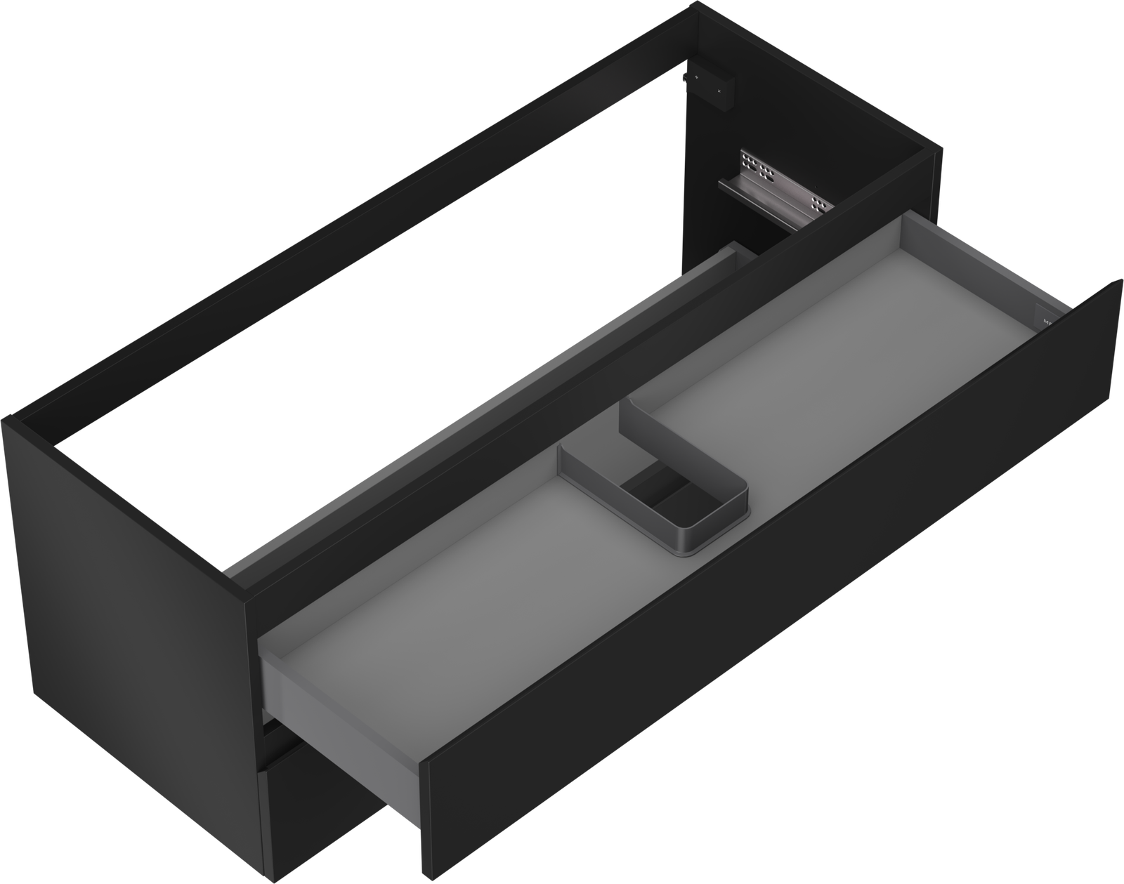 Изрезът в чекмеджето е проектиран по такъв начин, че да побере сифона, който е необходим в мивковите инсталации. Благодарение на това мебелът може да бъде монтиран напълно функционално, без да се налага отказване от пространството в чекмеджето заради инсталацията.