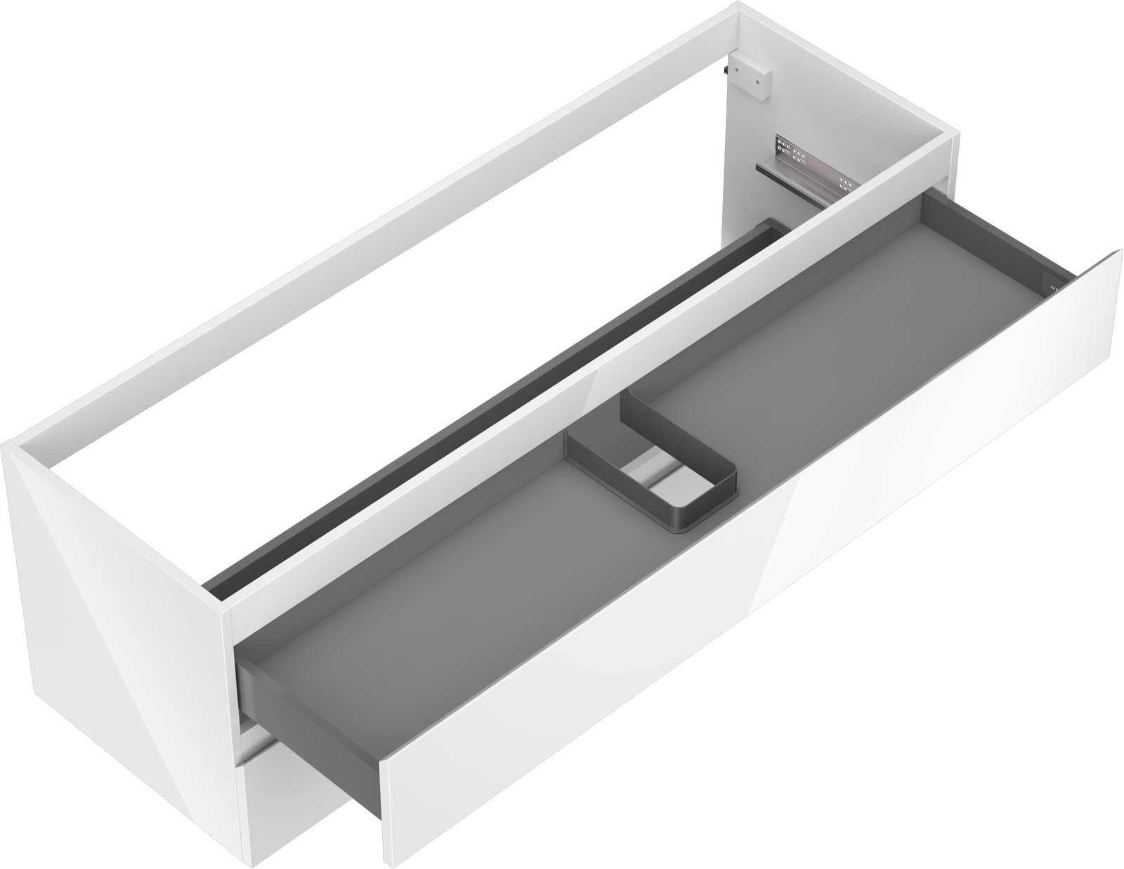 Изрезът в чекмеджето е проектиран по такъв начин, че да побере сифона, който е необходим в мивковите инсталации. Благодарение на това мебелът може да бъде монтиран напълно функционално, без да се налага отказване от пространството в чекмеджето заради инсталацията.