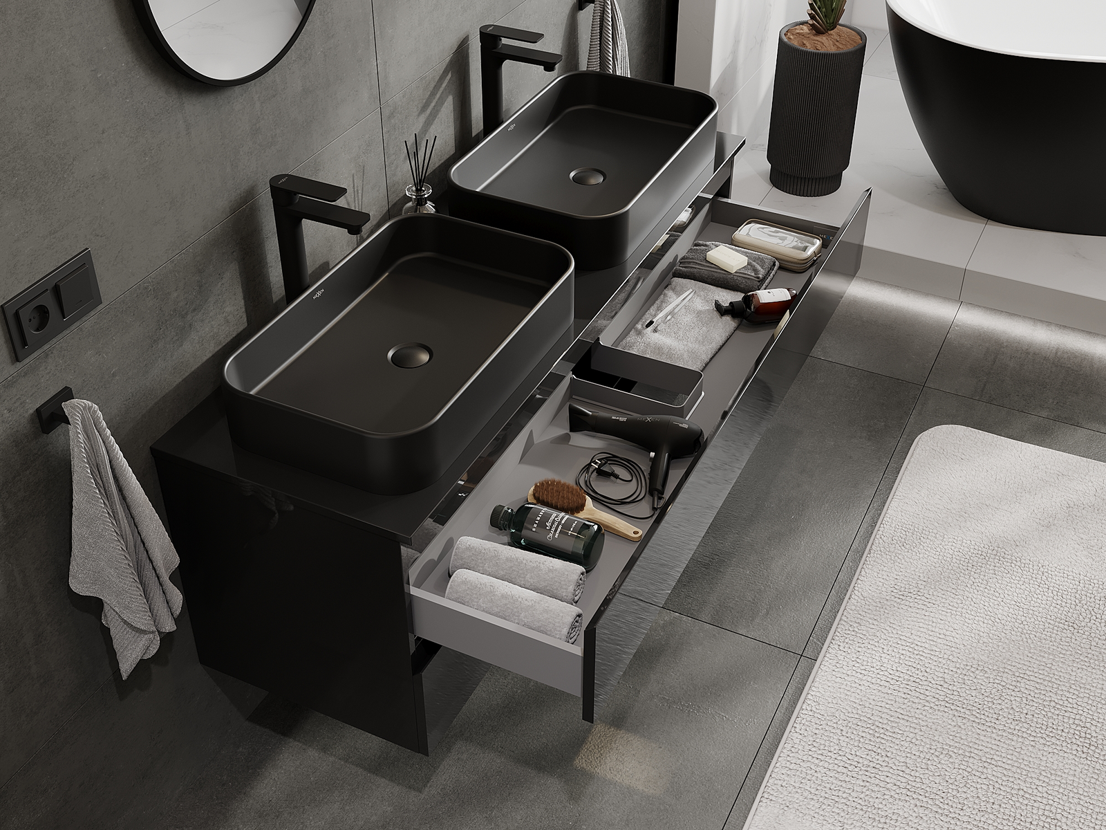 Нашите модулни мебели за баня могат да се комбинират в различни цветови конфигурации, което позволява пълна персонализация. Може да се избере както външният вид, така и функциите на отделните елементи, което позволява съчетаване на мебелите със собствените стилови и функционални предпочитания.