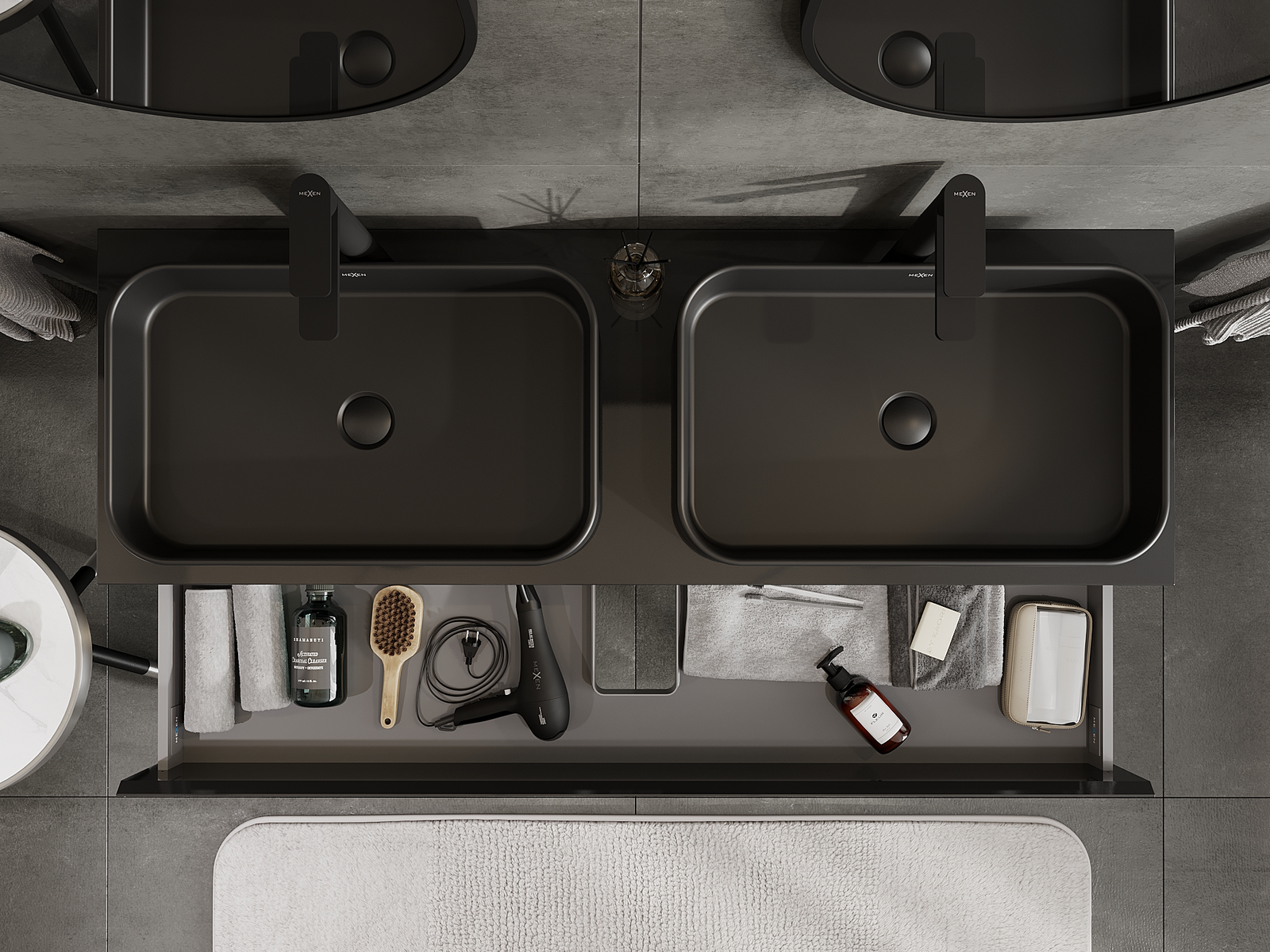 Изрезът в чекмеджето е проектиран по такъв начин, че да побере сифона, който е необходим в мивковите инсталации. Благодарение на това мебелът може да бъде монтиран напълно функционално, без да се налага отказване от пространството в чекмеджето заради инсталацията.