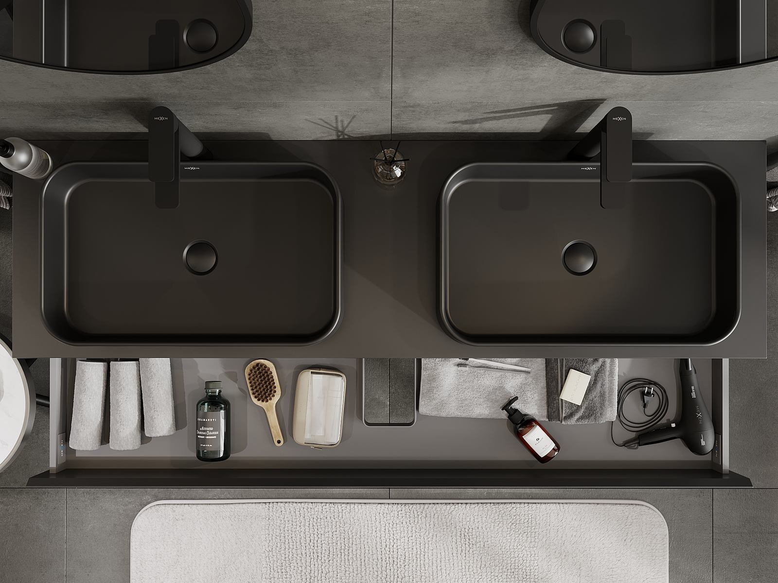 Изрезът в чекмеджето е проектиран по такъв начин, че да побере сифона, който е необходим в мивковите инсталации. Благодарение на това мебелът може да бъде монтиран напълно функционално, без да се налага отказване от пространството в чекмеджето заради инсталацията.