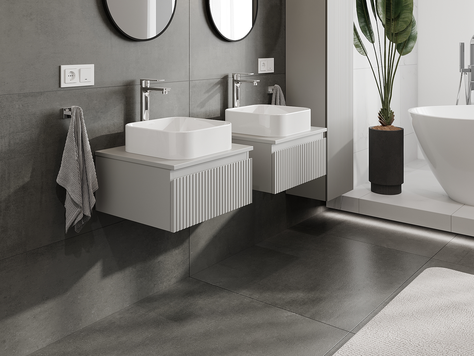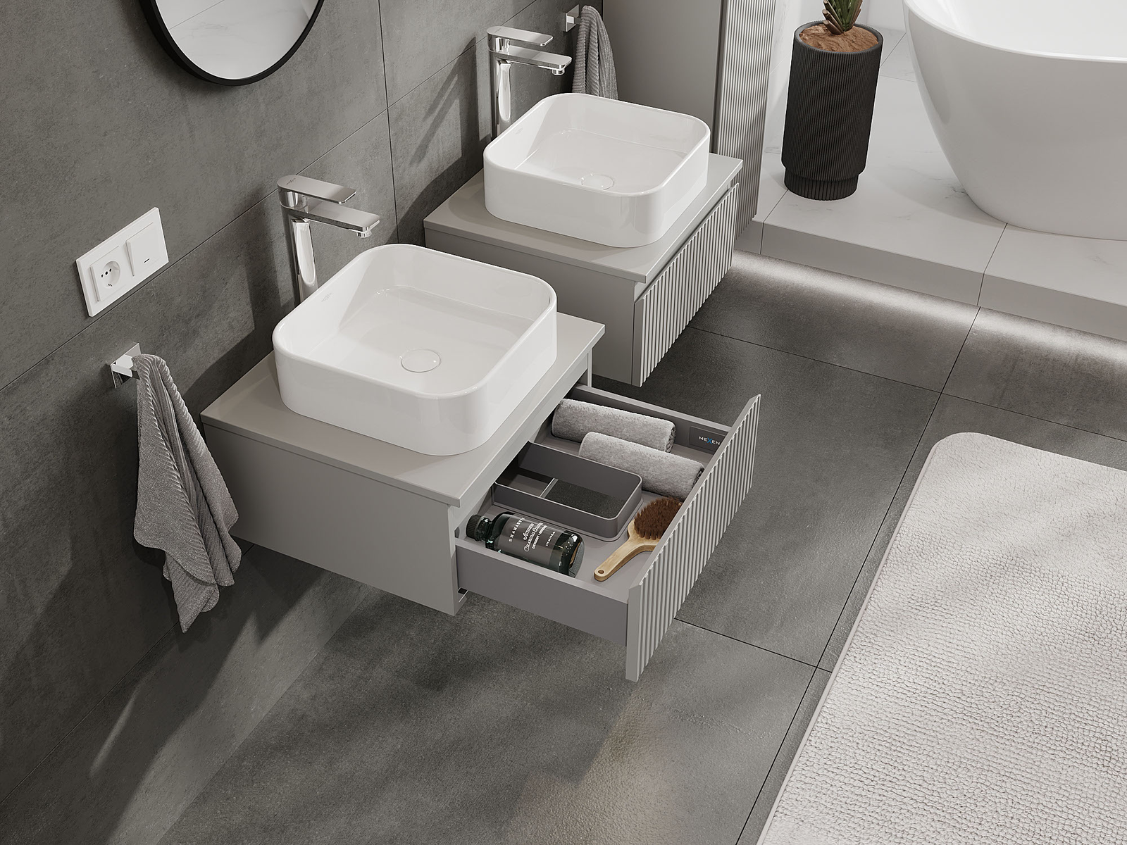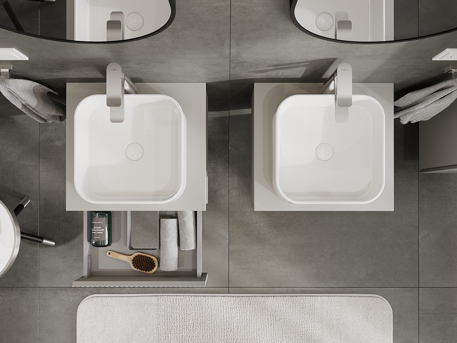 Нашите модулни мебели за баня могат да се комбинират в различни цветови конфигурации, което позволява пълна персонализация. Може да се избере както външният вид, така и функциите на отделните елементи, което позволява съчетаване на мебелите със собствените стилови и функционални предпочитания.