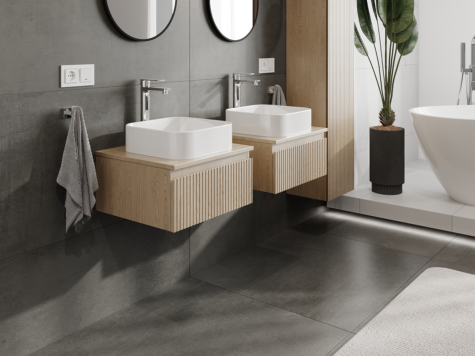 Нашите модулни мебели за баня могат да се комбинират в различни цветови конфигурации, което позволява пълна персонализация. Може да се избере както външният вид, така и функциите на отделните елементи, което позволява съчетаване на мебелите със собствените стилови и функционални предпочитания.