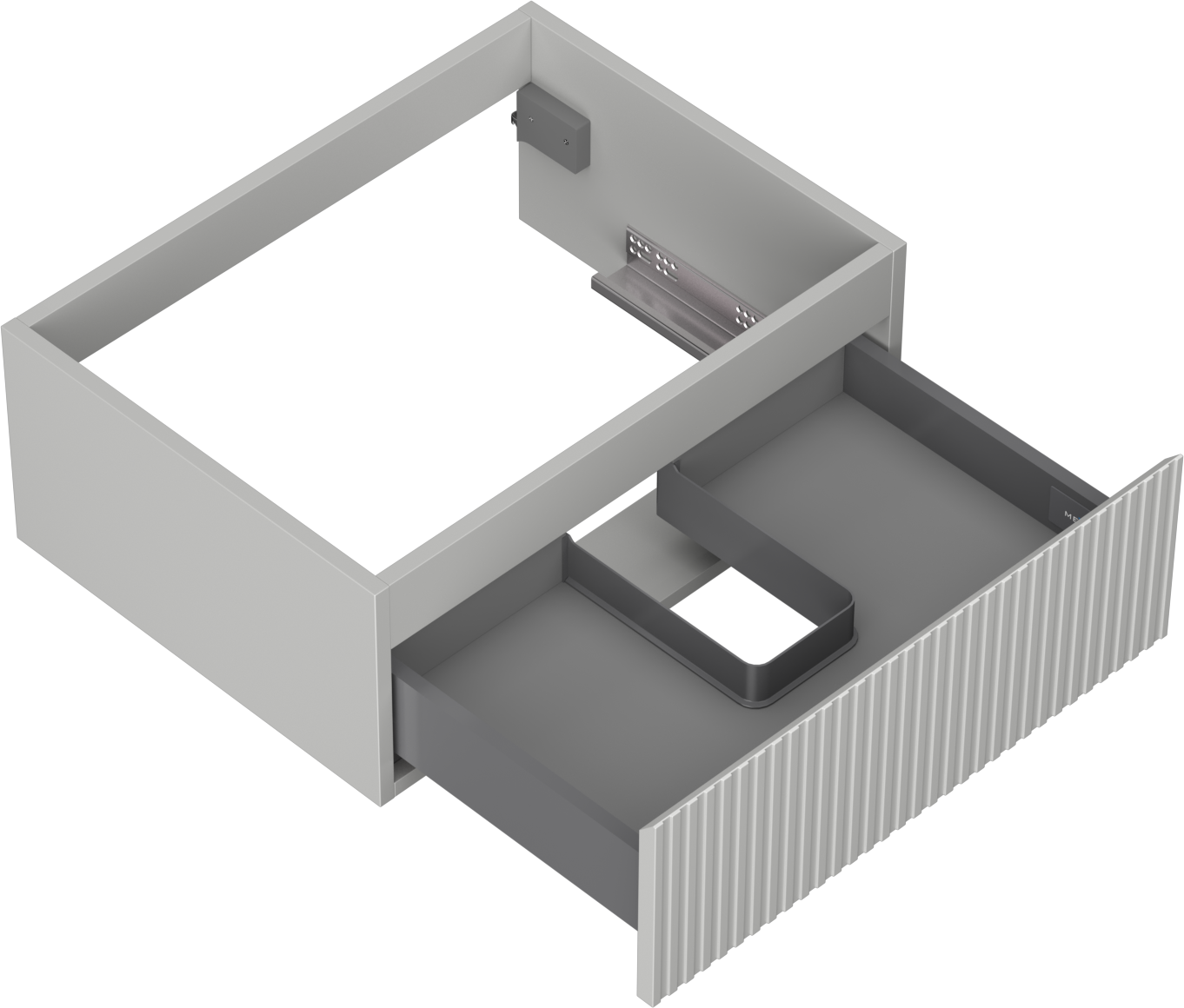 Изрезът в чекмеджето е проектиран по такъв начин, че да побере сифона, който е необходим в мивковите инсталации. Благодарение на това мебелът може да бъде монтиран напълно функционално, без да се налага отказване от пространството в чекмеджето заради инсталацията.