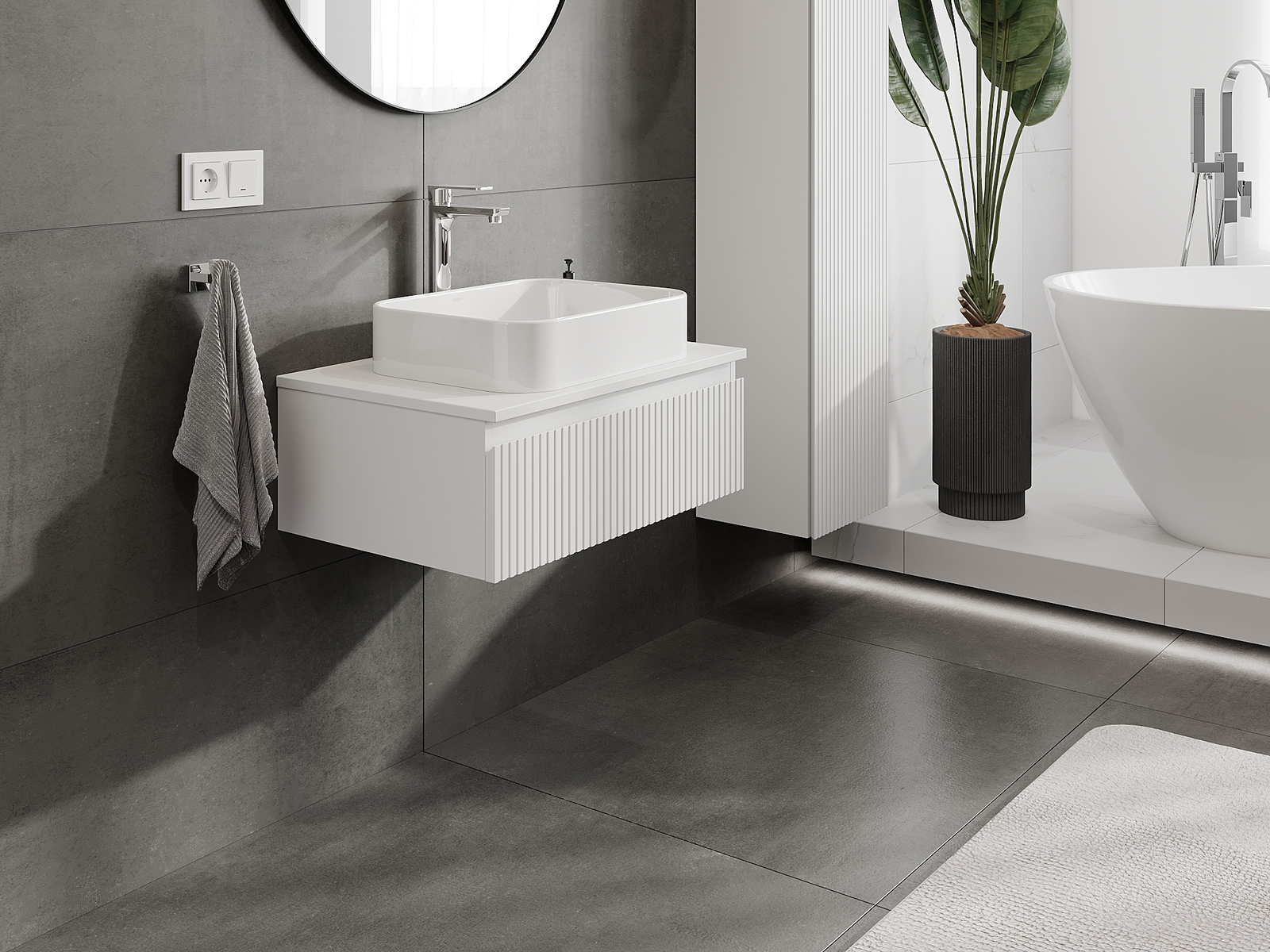 Корпусът на шкафа се доставя напълно сглобен, което означава максимално удобство и спестяване на време. Не е нужно да губите часове за сглобяване на мебела – просто го монтирайте на избраното място в банята. Това е идеалното решение за хора, които ценят бързия монтаж и незабавния ефект.