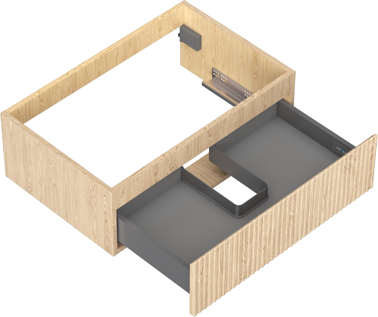 Изрезът в чекмеджето е проектиран по такъв начин, че да побере сифона, който е необходим в мивковите инсталации. Благодарение на това мебелът може да бъде монтиран напълно функционално, без да се налага отказване от пространството в чекмеджето заради инсталацията.