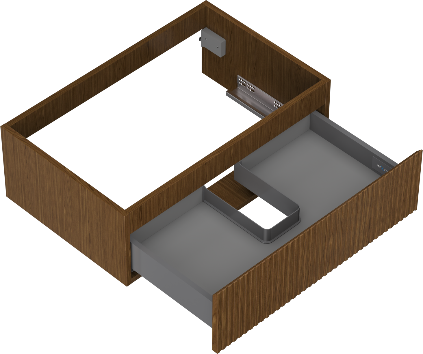 Изрезът в чекмеджето е проектиран по такъв начин, че да побере сифона, който е необходим в мивковите инсталации. Благодарение на това мебелът може да бъде монтиран напълно функционално, без да се налага отказване от пространството в чекмеджето заради инсталацията.