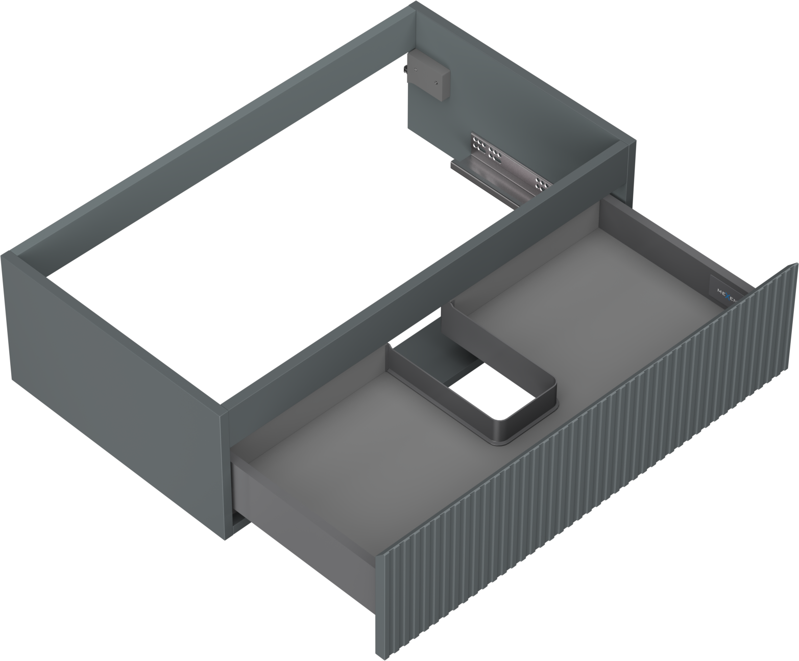 Изрезът в чекмеджето е проектиран по такъв начин, че да побере сифона, който е необходим в мивковите инсталации. Благодарение на това мебелът може да бъде монтиран напълно функционално, без да се налага отказване от пространството в чекмеджето заради инсталацията.