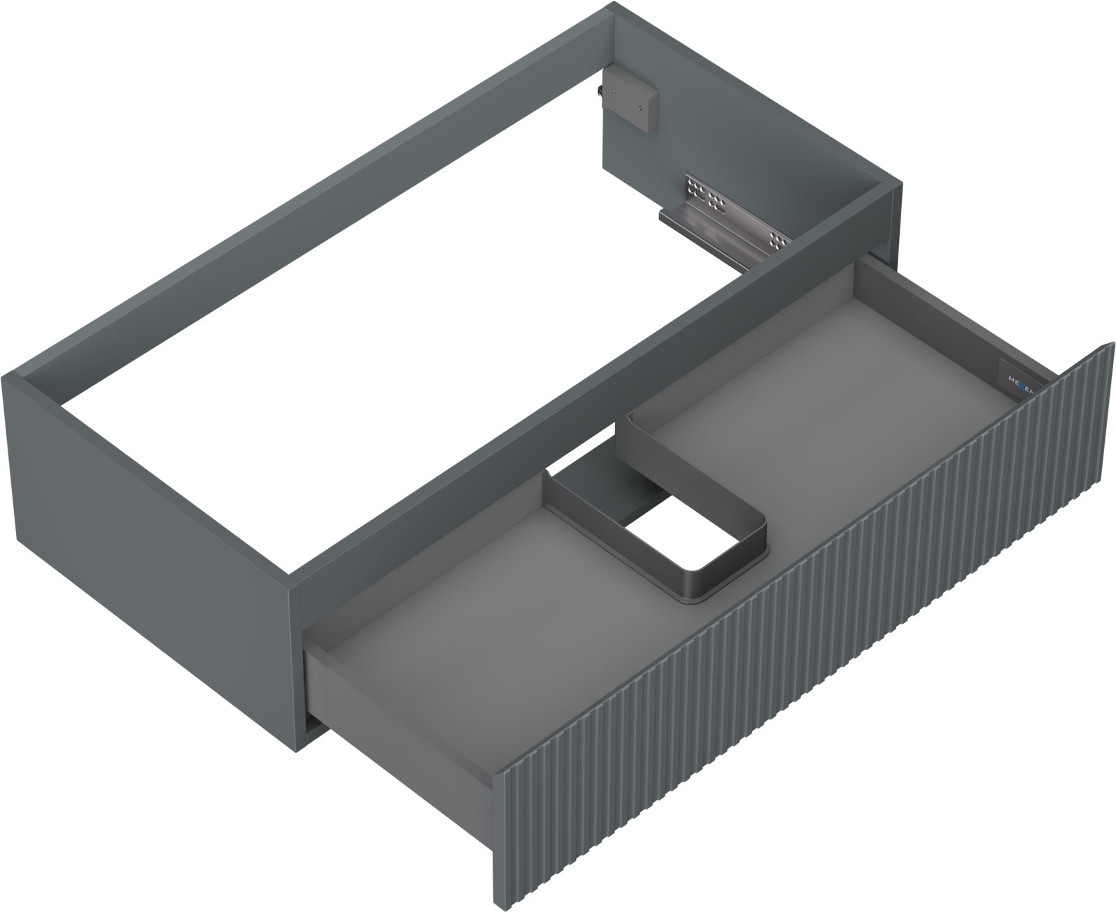 Изрезът в чекмеджето е проектиран по такъв начин, че да побере сифона, който е необходим в мивковите инсталации. Благодарение на това мебелът може да бъде монтиран напълно функционално, без да се налага отказване от пространството в чекмеджето заради инсталацията.