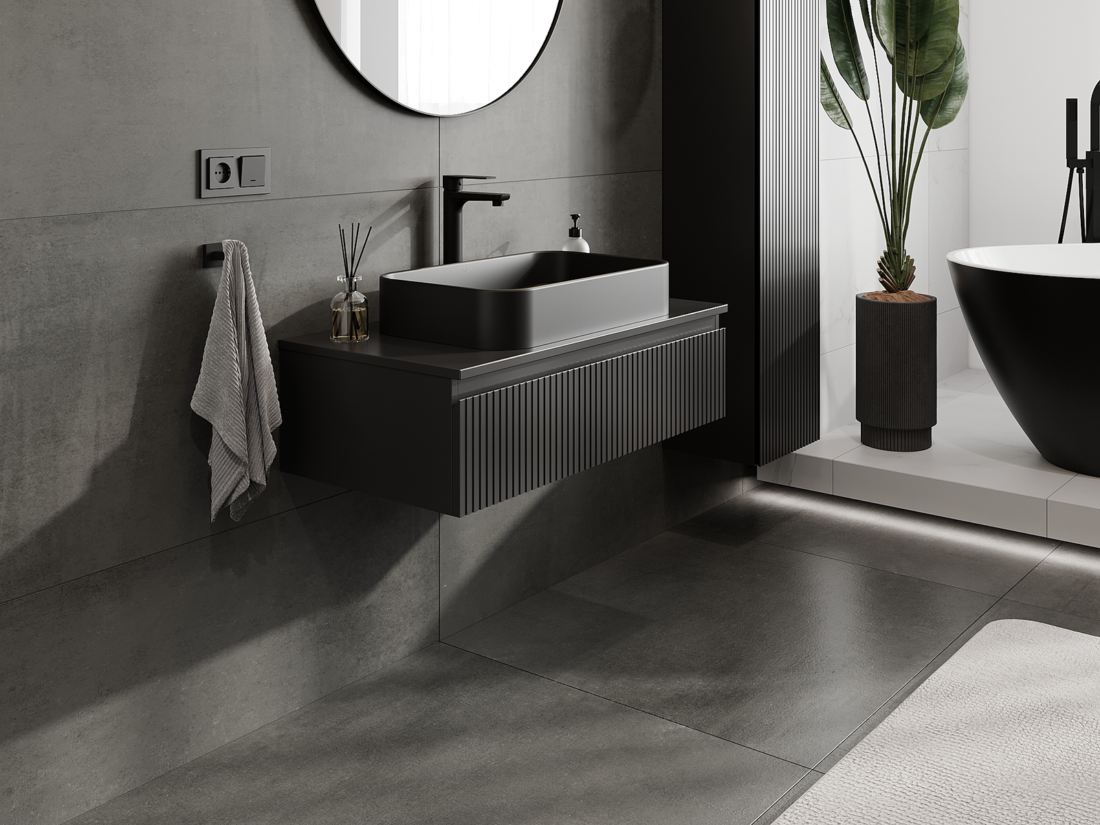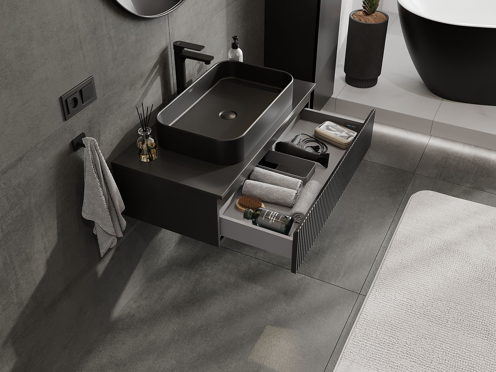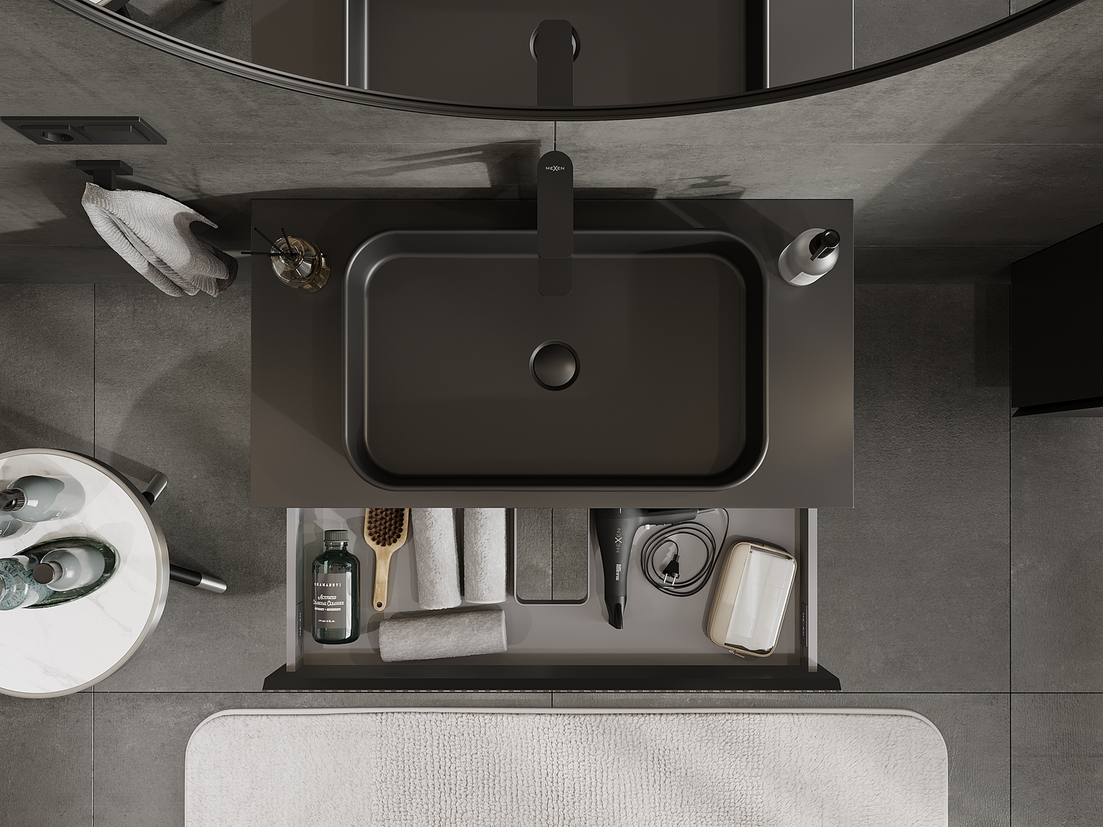 Mexen Rivel шкаф за баня под мивка 90 см, 1 чекмедже, с релеф, черен мат