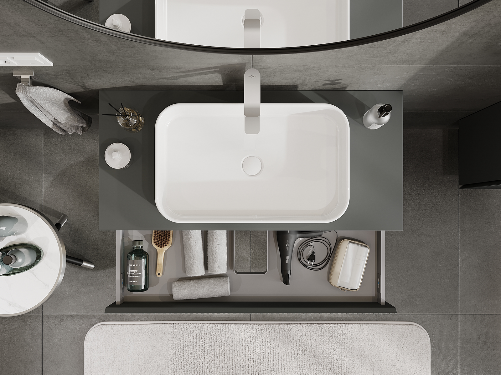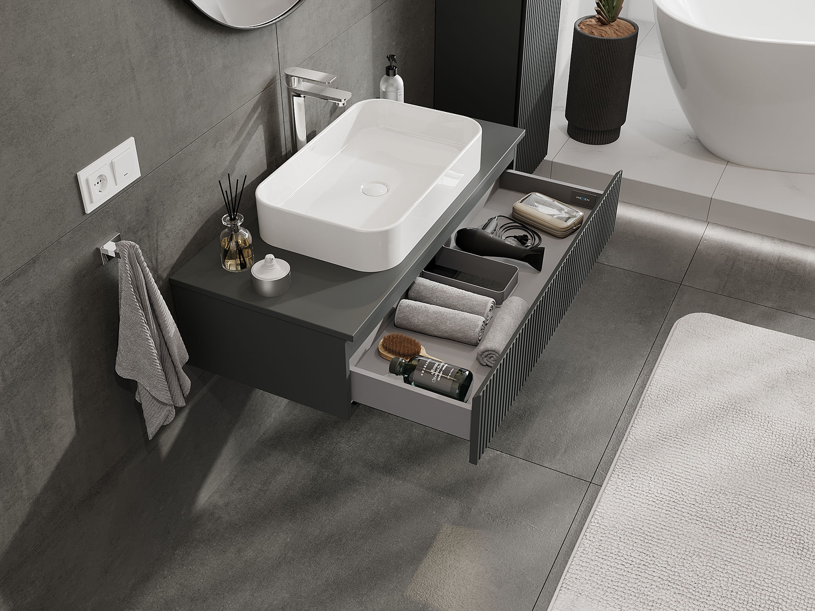 Mexen Rivel шкаф за баня под мивка 100 см, 1 чекмедже, рифелован, графит мат