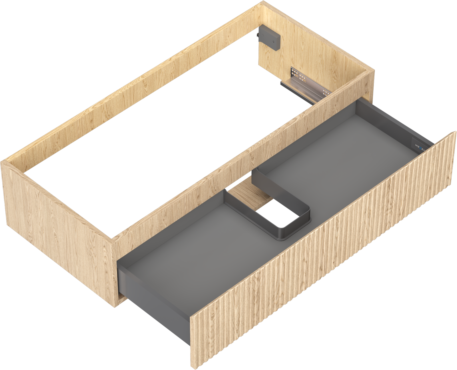 Изрезът в чекмеджето е проектиран по такъв начин, че да побере сифона, който е необходим в мивковите инсталации. Благодарение на това мебелът може да бъде монтиран напълно функционално, без да се налага отказване от пространството в чекмеджето заради инсталацията.