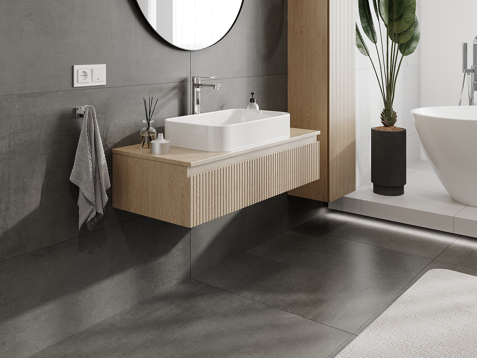 Корпусът на шкафа се доставя напълно сглобен, което означава максимално удобство и спестяване на време. Не е нужно да губите часове за сглобяване на мебела – просто го монтирайте на избраното място в банята. Това е идеалното решение за хора, които ценят бързия монтаж и незабавния ефект.