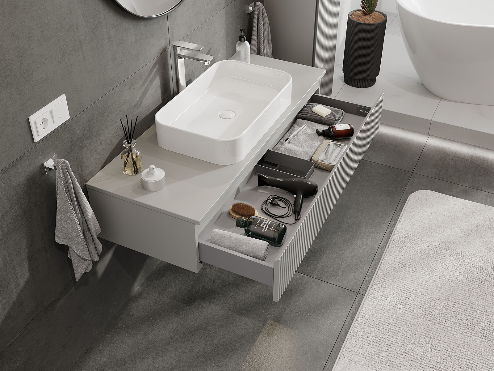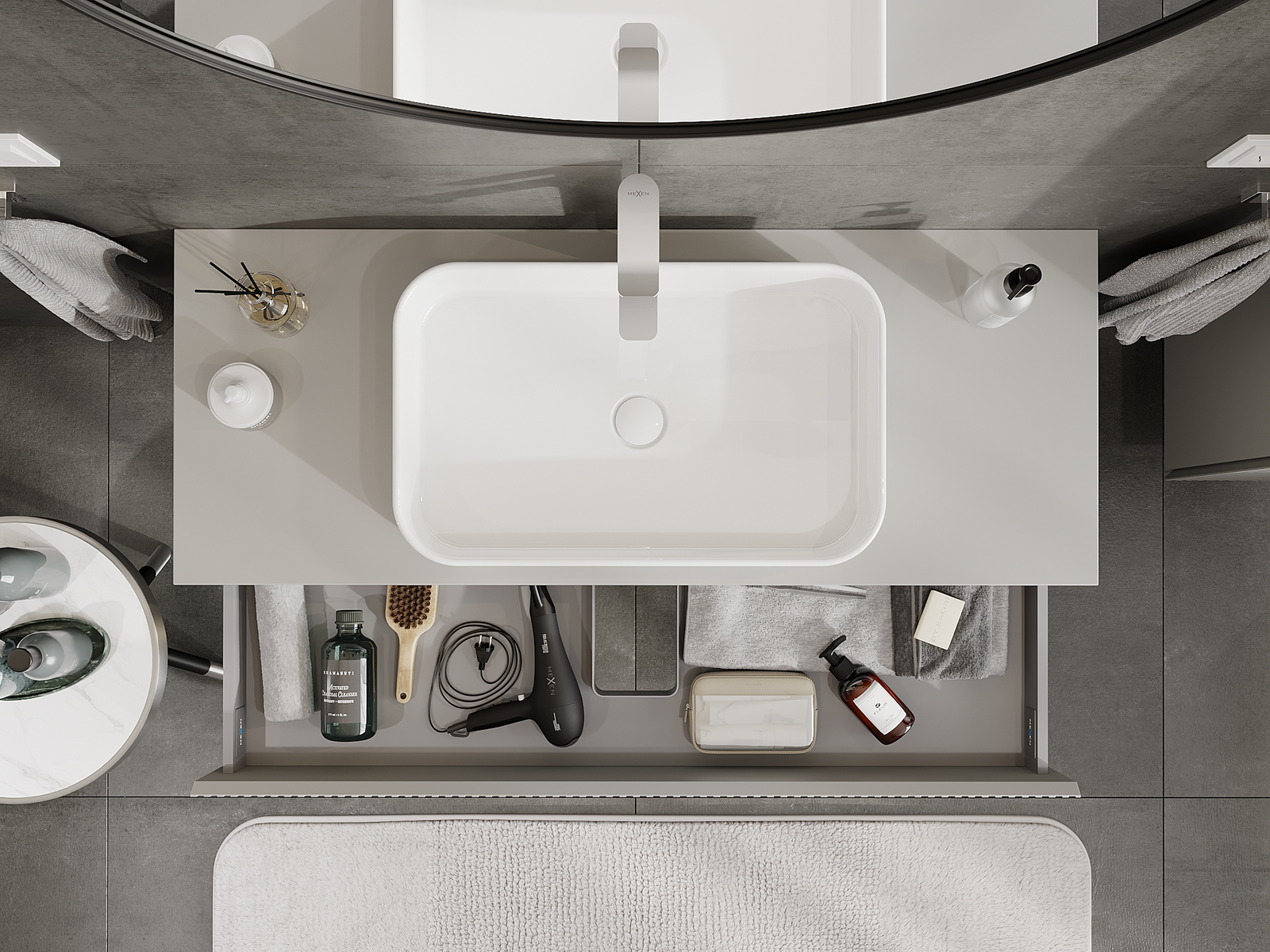 Нашите модулни мебели за баня могат да се комбинират в различни цветови конфигурации, което позволява пълна персонализация. Може да се избере както външният вид, така и функциите на отделните елементи, което позволява съчетаване на мебелите със собствените стилови и функционални предпочитания.