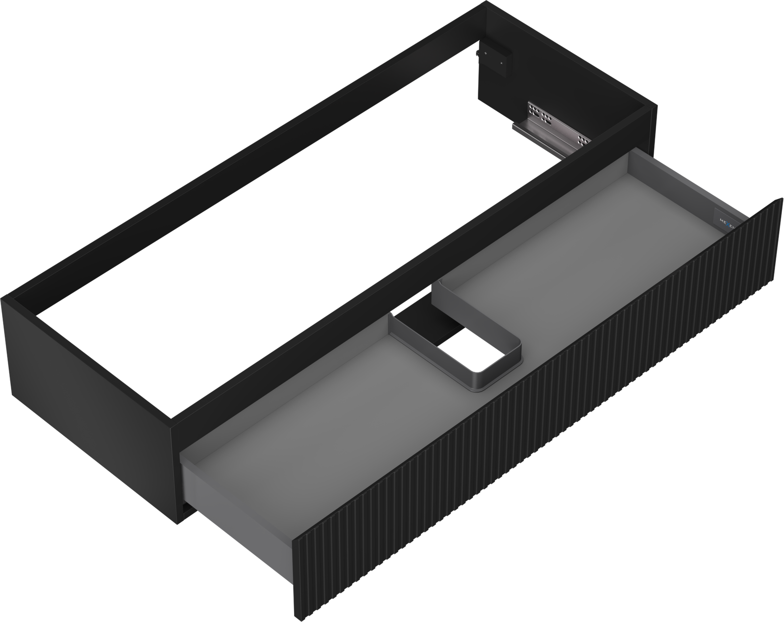 Изрезът в чекмеджето е проектиран по такъв начин, че да побере сифона, който е необходим в мивковите инсталации. Благодарение на това мебелът може да бъде монтиран напълно функционално, без да се налага отказване от пространството в чекмеджето заради инсталацията.