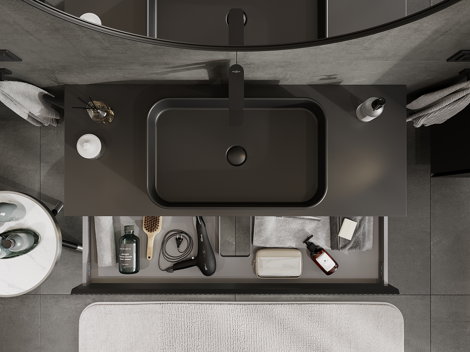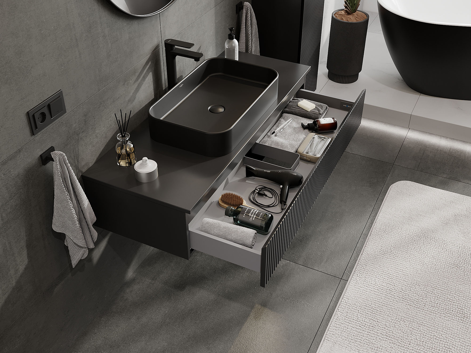 Mexen Rivel баня шкаф под мивка 120 см, 1 чекмедже, канален , черен мат - 91A20-12023-1-BF71