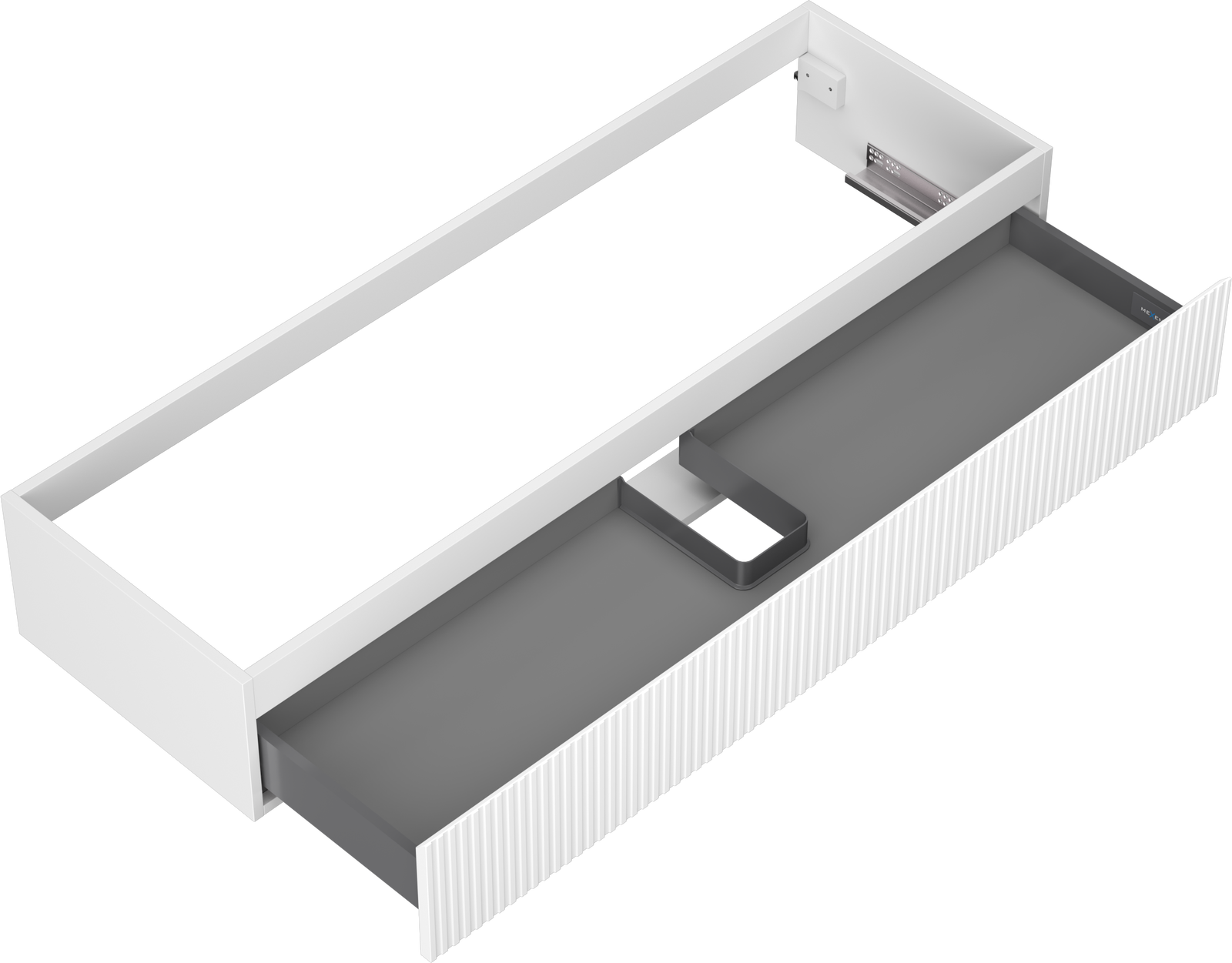 Изрезът в чекмеджето е проектиран по такъв начин, че да побере сифона, който е необходим в мивковите инсталации. Благодарение на това мебелът може да бъде монтиран напълно функционално, без да се налага отказване от пространството в чекмеджето заради инсталацията.