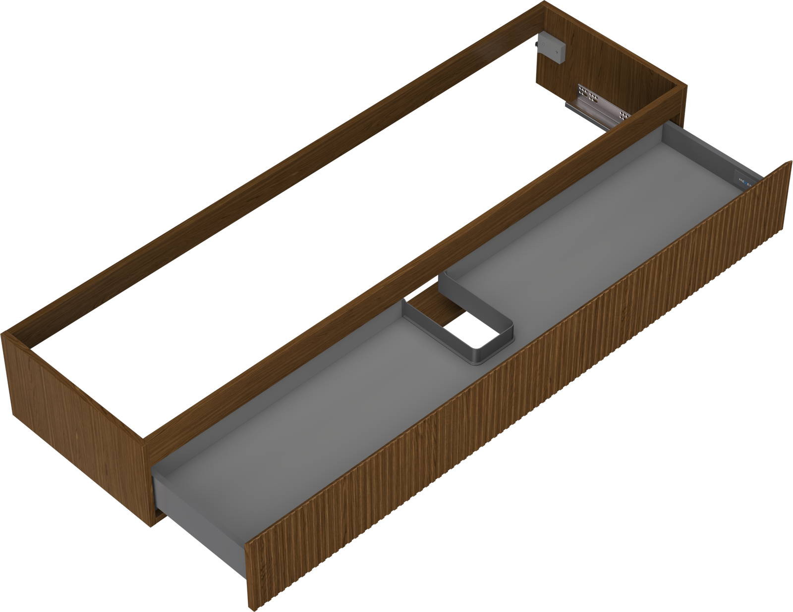 Изрезът в чекмеджето е проектиран по такъв начин, че да побере сифона, който е необходим в мивковите инсталации. Благодарение на това мебелът може да бъде монтиран напълно функционално, без да се налага отказване от пространството в чекмеджето заради инсталацията.