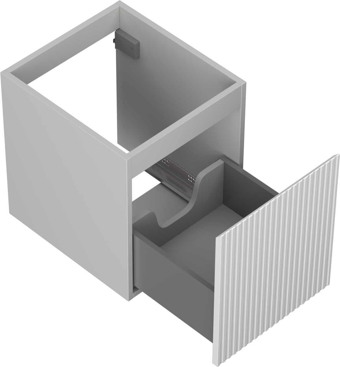 Изрезът в чекмеджето е проектиран по такъв начин, че да побере сифона, който е необходим в мивковите инсталации. Благодарение на това мебелът може да бъде монтиран напълно функционално, без да се налага отказване от пространството в чекмеджето заради инсталацията.