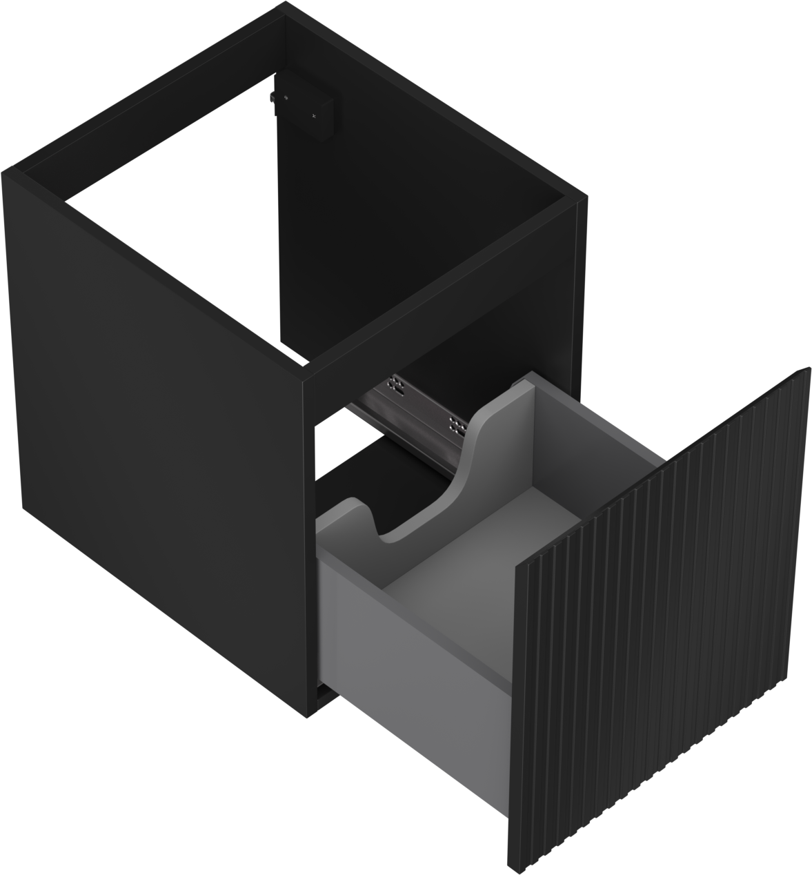 Изрезът в чекмеджето е проектиран по такъв начин, че да побере сифона, който е необходим в мивковите инсталации. Благодарение на това мебелът може да бъде монтиран напълно функционално, без да се налага отказване от пространството в чекмеджето заради инсталацията.