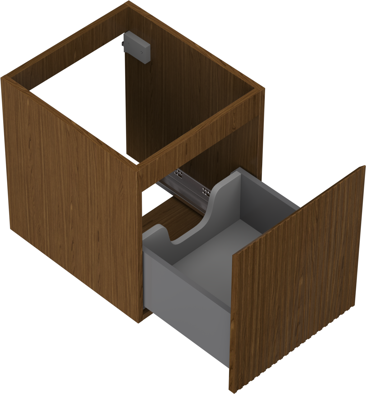 Изрезът в чекмеджето е проектиран по такъв начин, че да побере сифона, който е необходим в мивковите инсталации. Благодарение на това мебелът може да бъде монтиран напълно функционално, без да се налага отказване от пространството в чекмеджето заради инсталацията.