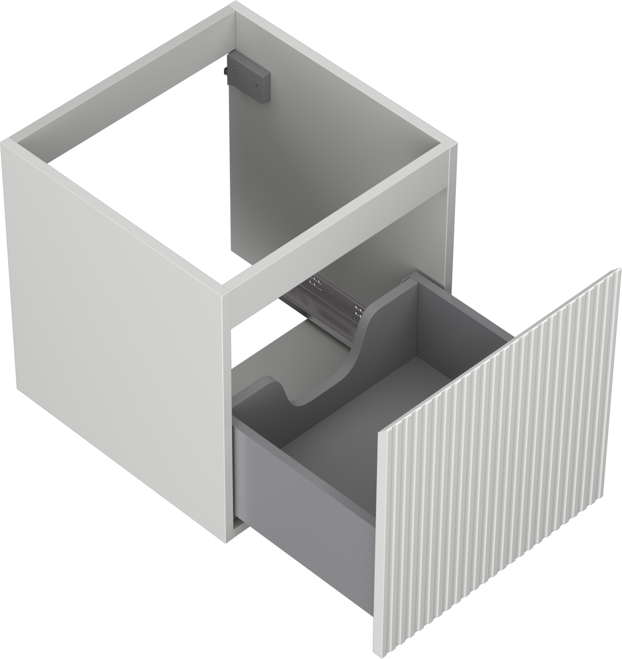 Изрезът в чекмеджето е проектиран по такъв начин, че да побере сифона, който е необходим в мивковите инсталации. Благодарение на това мебелът може да бъде монтиран напълно функционално, без да се налага отказване от пространството в чекмеджето заради инсталацията.