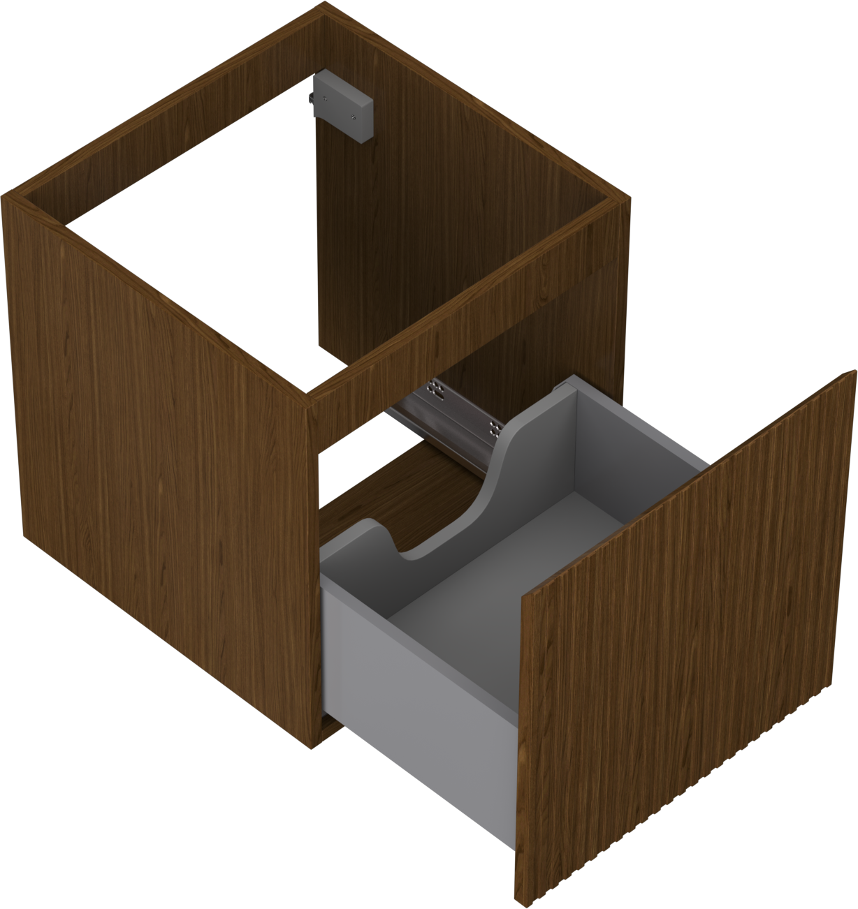 Изрезът в чекмеджето е проектиран по такъв начин, че да побере сифона, който е необходим в мивковите инсталации. Благодарение на това мебелът може да бъде монтиран напълно функционално, без да се налага отказване от пространството в чекмеджето заради инсталацията.
