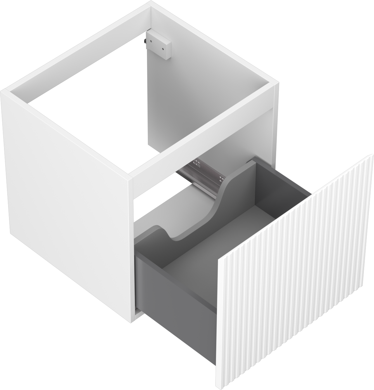 Изрезът в чекмеджето е проектиран по такъв начин, че да побере сифона, който е необходим в мивковите инсталации. Благодарение на това мебелът може да бъде монтиран напълно функционално, без да се налага отказване от пространството в чекмеджето заради инсталацията.