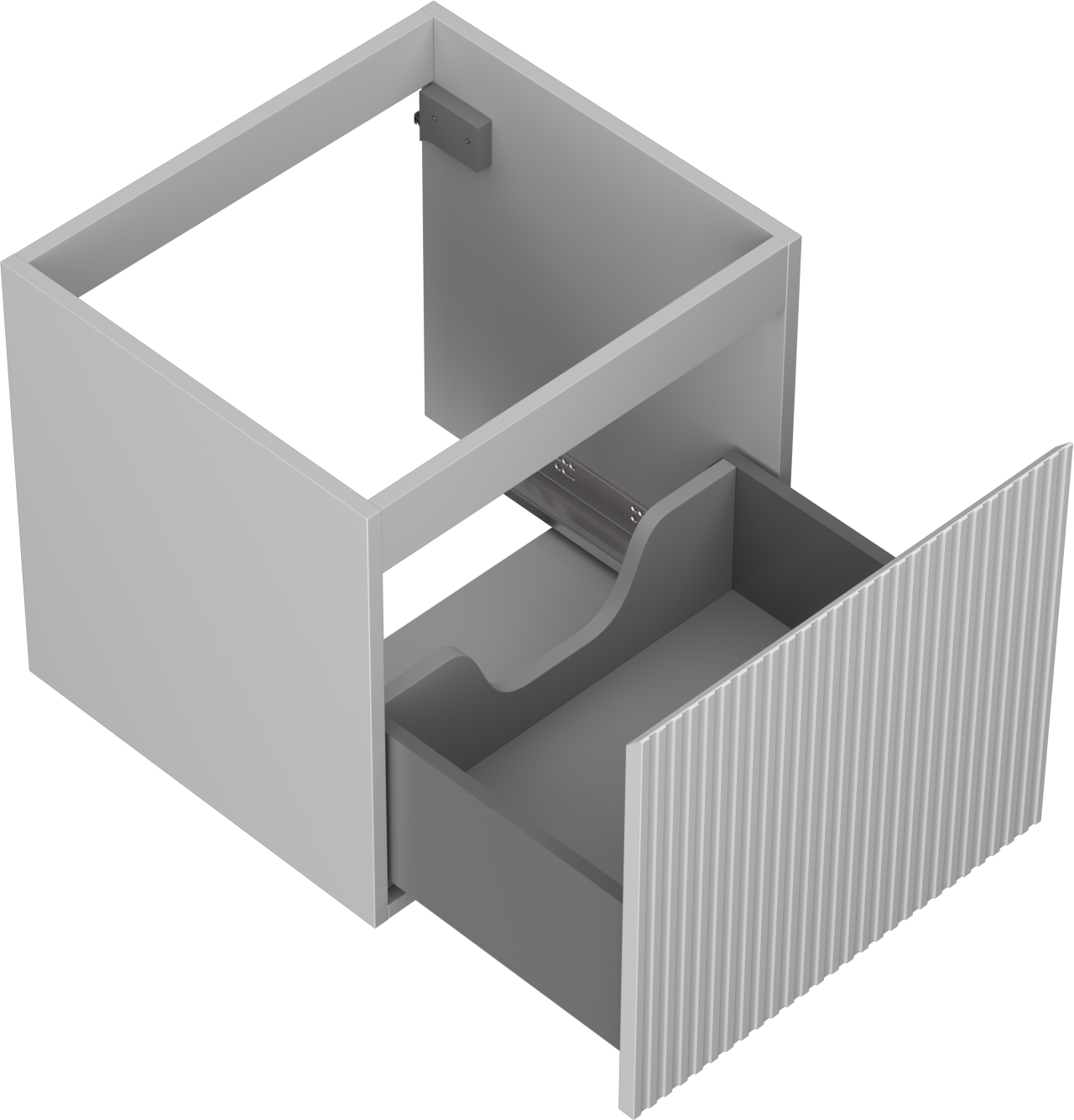 Изрезът в чекмеджето е проектиран по такъв начин, че да побере сифона, който е необходим в мивковите инсталации. Благодарение на това мебелът може да бъде монтиран напълно функционално, без да се налага отказване от пространството в чекмеджето заради инсталацията.