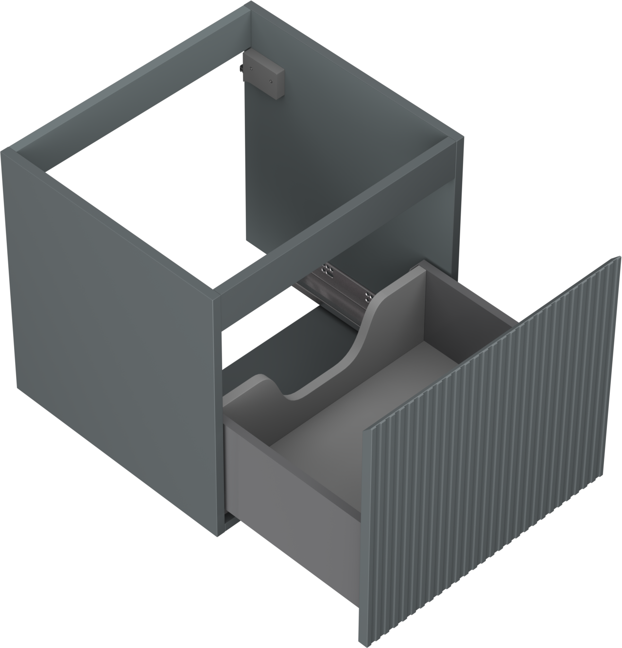 Изрезът в чекмеджето е проектиран по такъв начин, че да побере сифона, който е необходим в мивковите инсталации. Благодарение на това мебелът може да бъде монтиран напълно функционално, без да се налага отказване от пространството в чекмеджето заради инсталацията.