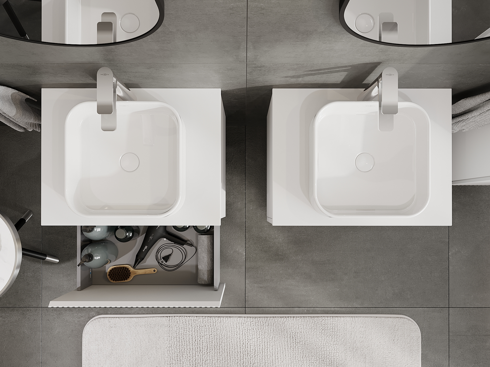 Изрезът в чекмеджето е проектиран по такъв начин, че да побере сифона, който е необходим в мивковите инсталации. Благодарение на това мебелът може да бъде монтиран напълно функционално, без да се налага отказване от пространството в чекмеджето заради инсталацията.