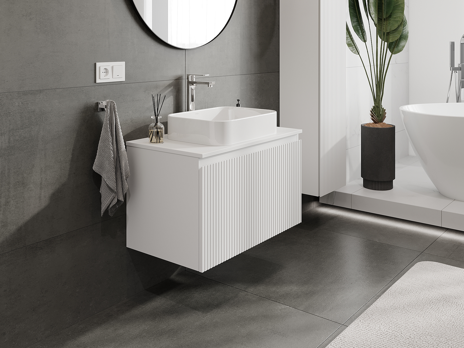 Корпусът на шкафа се доставя напълно сглобен, което означава максимално удобство и спестяване на време. Не е нужно да губите часове за сглобяване на мебела – просто го монтирайте на избраното място в банята. Това е идеалното решение за хора, които ценят бързия монтаж и незабавния ефект.