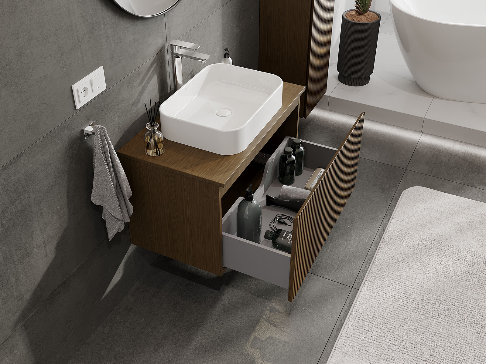 Нашите модулни мебели за баня могат да се комбинират в различни цветови конфигурации, което позволява пълна персонализация. Може да се избере както външният вид, така и функциите на отделните елементи, което позволява съчетаване на мебелите със собствените стилови и функционални предпочитания.
