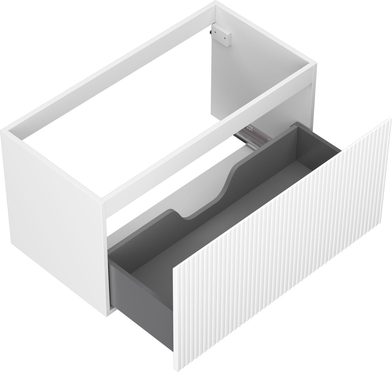 Изрезът в чекмеджето е проектиран по такъв начин, че да побере сифона, който е необходим в мивковите инсталации. Благодарение на това мебелът може да бъде монтиран напълно функционално, без да се налага отказване от пространството в чекмеджето заради инсталацията.
