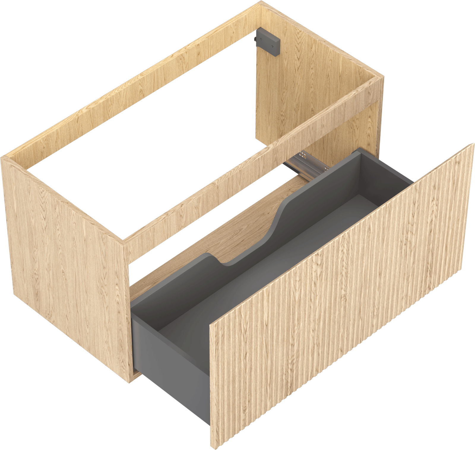 Изрезът в чекмеджето е проектиран по такъв начин, че да побере сифона, който е необходим в мивковите инсталации. Благодарение на това мебелът може да бъде монтиран напълно функционално, без да се налага отказване от пространството в чекмеджето заради инсталацията.