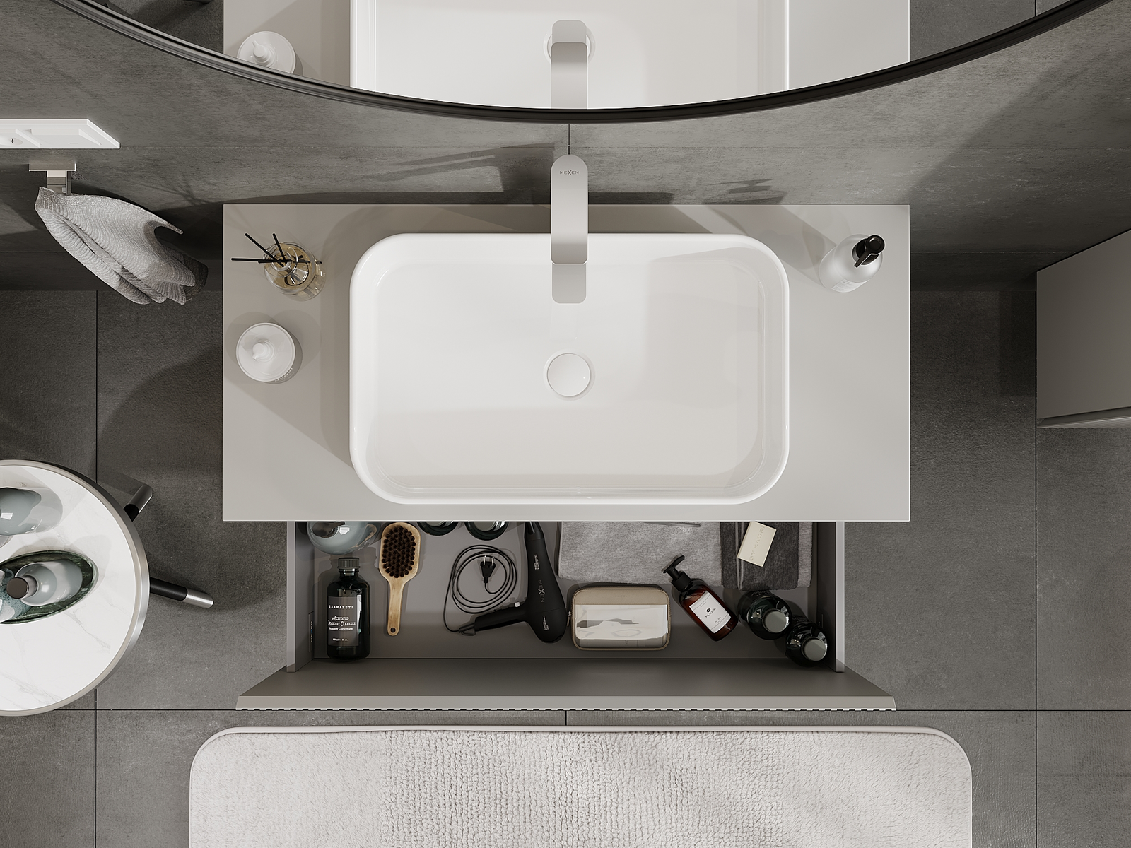 Нашите модулни мебели за баня могат да се комбинират в различни цветови конфигурации, което позволява пълна персонализация. Може да се избере както външният вид, така и функциите на отделните елементи, което позволява съчетаване на мебелите със собствените стилови и функционални предпочитания.